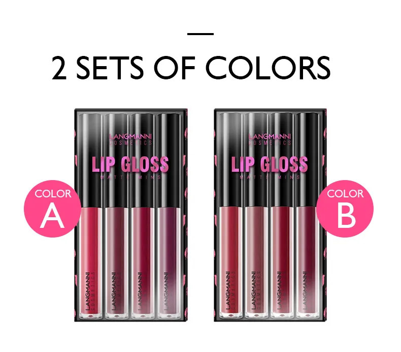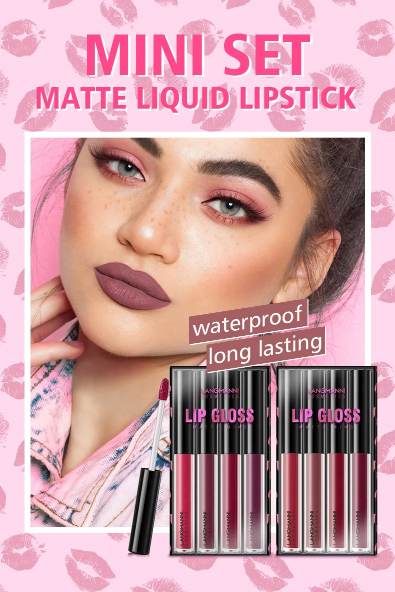Набор матовых блесков для губ, 4 шт.компл., жидкая губная помада, водостойкая, длинная, губная помада с эффектом длительного увлажнения, женский подарок, набор косметики для красоты