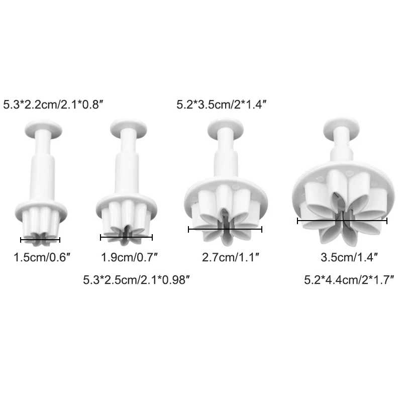 Всё как в описании, 4 плунжера для цветов разных размеров. Были обернуты дополнительно пупыркой, не повредились в пути. Доставили в указанный срок,даже раньше на 2 дня