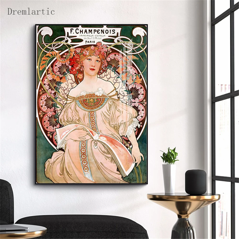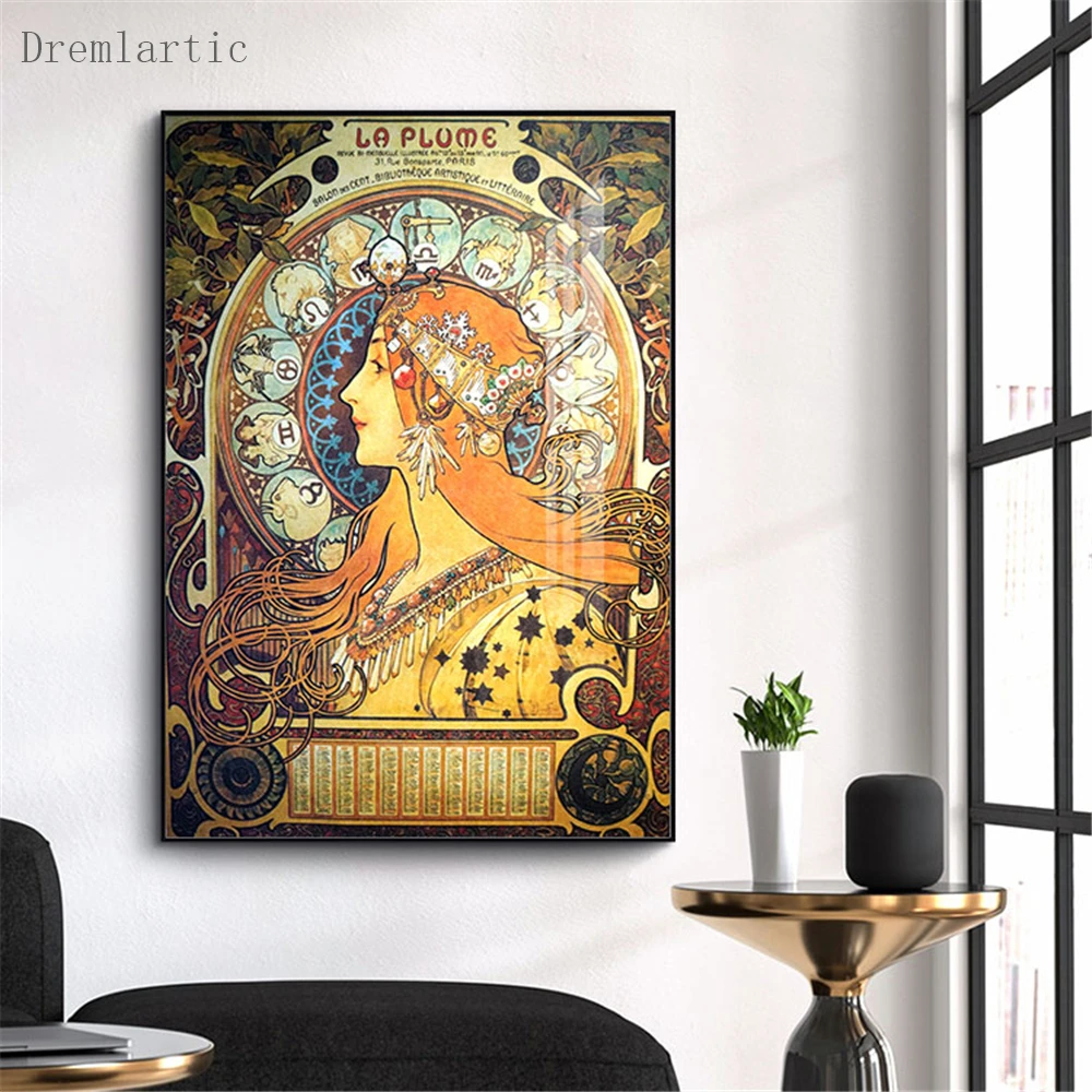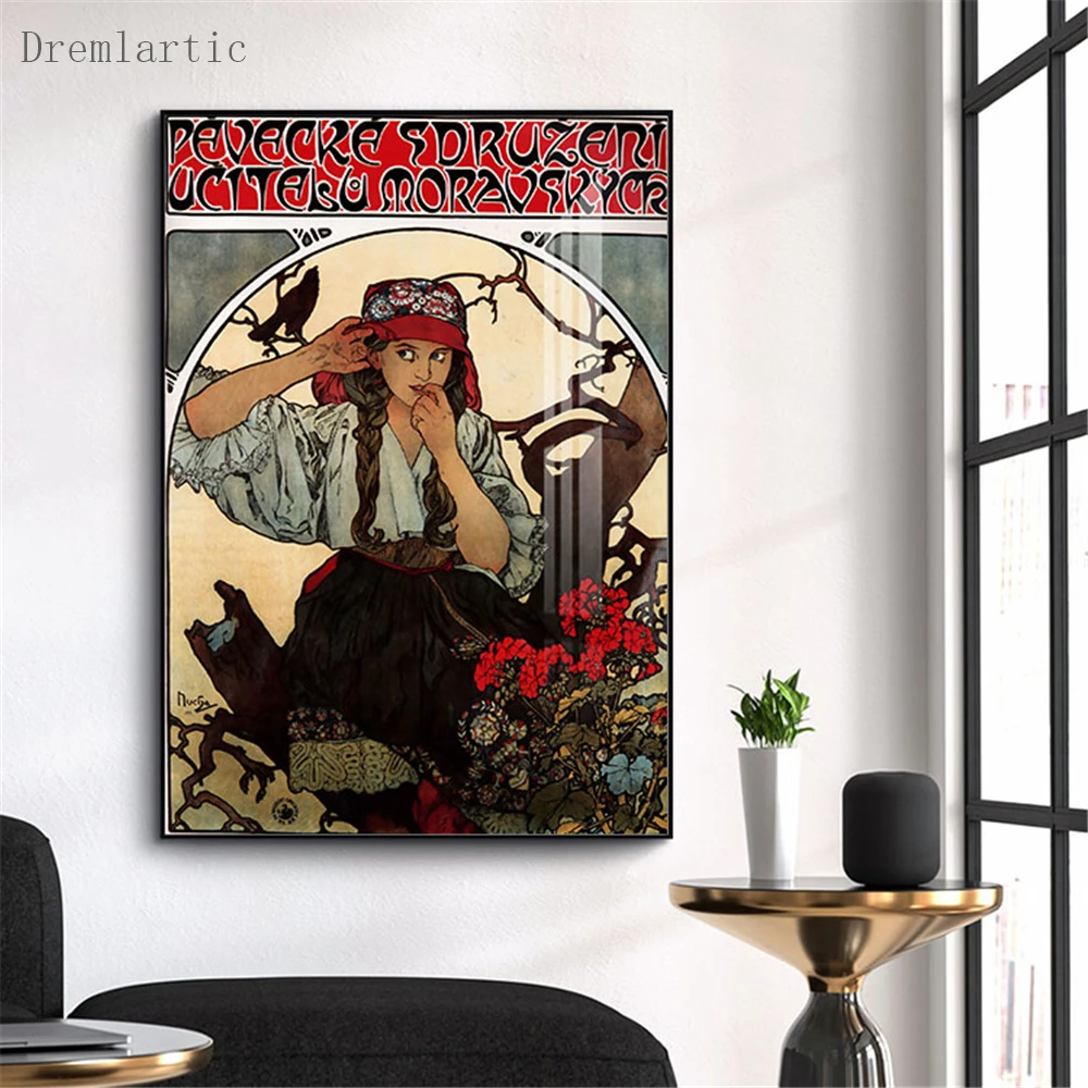 Альфонса Мухи @ q холст постер из шелковой ткани современный Стиль принты вечерние дом декор комнаты #20-1005-4