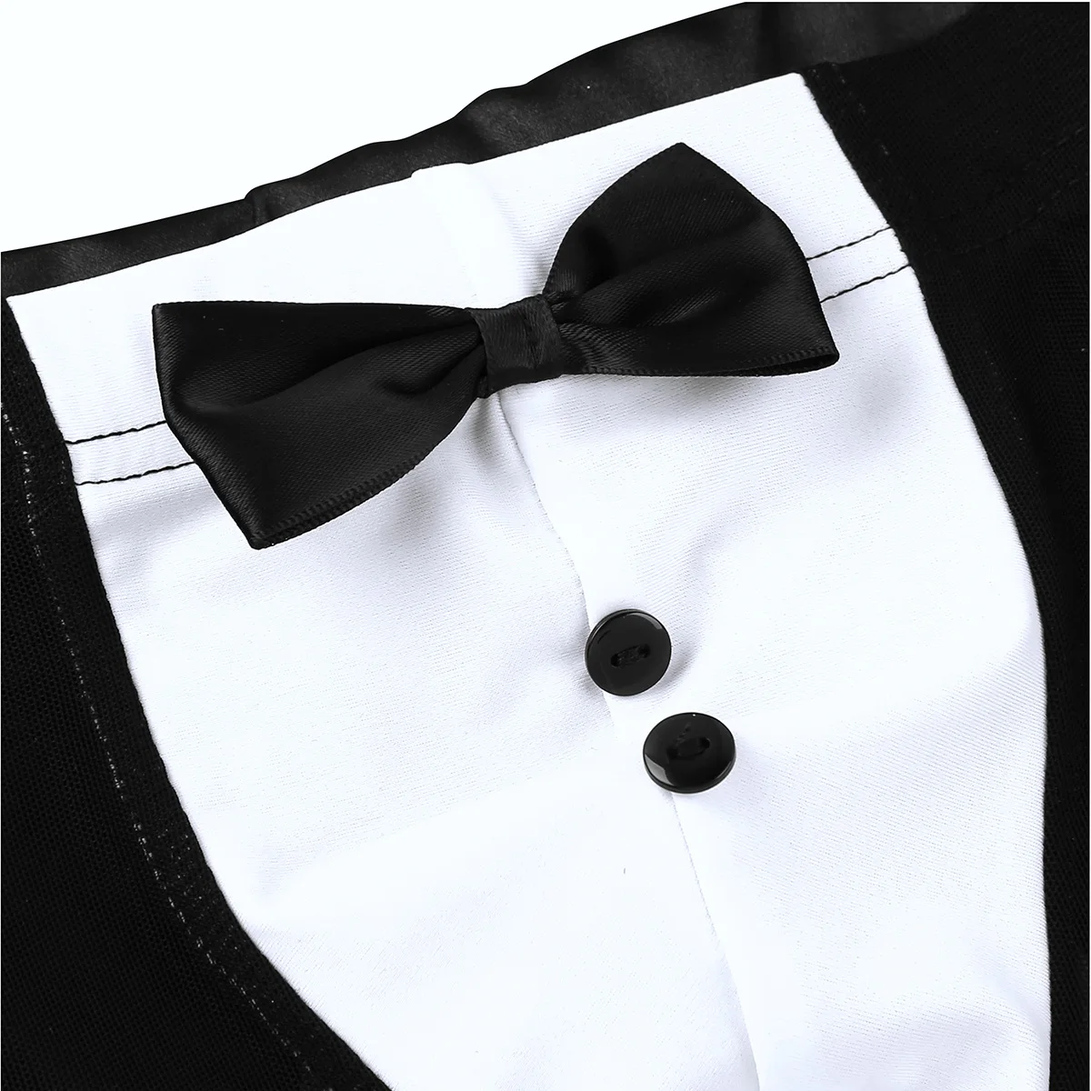 Особенности: Новинка мужской смокинг для официанта, нижнее белье, застежка-липучка. Низкая посадка с эластичным поясом, спереди белый объемный мешочек с 2 кнопками и милым бантом. Сзади с кроличьими ушками. Прозрачная сетка, очень мягкая и удобная, легкая, приятная на ощупь. Идеально подходит для ночного белья, сна или самообслуживания, хороший подарок для вашего любимого человека или себя. Пожалуйста, внимательно проверьте таблицу размеров перед покупкой, ручной и машинной стиркой.