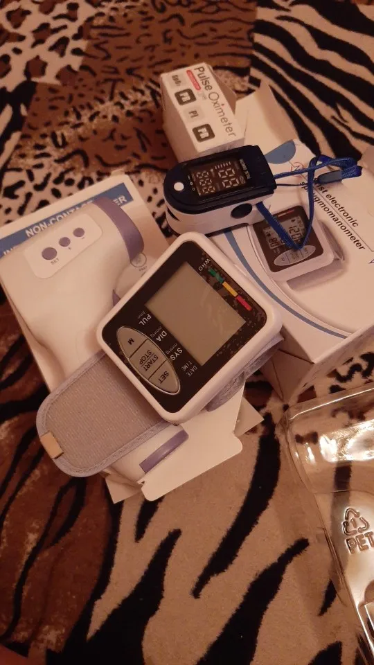 Инфракрасный термометр, монитор артериального давления и пульсоксиметр на пальцах.[Инфракрасный термометр]Особенности:Инфракрасное измерение: Быстрое измерение в 0.5s. Точный и надежный с улучшенным алгоритмом и оптимизированной калибровкой температуры.Функция памяти: 99 групп воспоминаний о данных измерений, удобно отображать и отслеживать изменения температуры.3 цвета ЖК-дисплея: трехцветный индикатор зеленого, желтого и красного цвета. Большой экран с подсветкой легко читаемый.Энергосбережение: при отсутствии работы он автоматически выключится в течение 30 секунд.Универсальность: единицы измерения по Цельсию и Фаренгейту опционально, переключаемый режим измерения температуры кожи и объекта.Карманный дизайн: портативное устройство с эргономичным дизайном, портативное для переноски, Бесконтактное и безопасное в использовании.Характеристики:Материал: АБСЦвет: фиолетовыйПамять: 99 группЕдиница измерения: ℃/℉Разрешение: 0,1 ℃Расстояние измерения: 3-5 смВремя измерения: 5sАвтоматическое отключение: в течение 30 секундДиапазон измерения: 32,0 ℃ ~ 42,9 ℃/89,6 ~ 109,2 ℉Точность: ± 0,2 ℃ (в пределах 35,0 ℃ ~ 42,0 ℃); ± 0,3 ℃ (в пределах 32,0 ℃ ~ 34,9 ℃, 42,1 ℃ ~ 42,9 ℃)Рабочая среда: 10 ℃ ~ 40 ℃(50 ~ 104 ℉), RH≤ 85%Среда хранения: 0 ℃ ~ 50 ℃(32 ~ 122 ℉), RH≤ 85%Трехцветный дисплей:Зеленый: 32,0 ℃≤T <37,2 ℃ (89,6 ℉≤T <98,96 ℉)Желтый: 37,2 ℃≤T <39,1 ℃ (98,96 ℉≤T <102,38 ℉)Красный: 39,1 ℃≤T <42,9 ℃ (102,38 ℉≤T <109,22 ℉)Источник питания: 2 * батарейки типа "ААА" (не входит в комплект)Размер изделия: 149*77*43 мм/5,86*3,03 * дюймаВес изделия: 130 г/4,58 унцииПосылка: 17,5*15,0*5,5 см/6,89*5,91 * 2.17inВес посылка: 150 г/5,29 унции[Пульсоксиметр на пальцах]Особенности:[Многофункциональность]: пульсоксиметр в основном измеряет насыщенность кислородом, частоту пульса. Подходит для семьи, личной гигиены в спорте и т. д. более того, он также подходит для пожилых людей старше 60 лет, людей, которые работают более 12 часов в день.[Как использовать]: Включите пульсоксиметр, поместите один из пальцев в Силиконовое отверстие оксиметра. Затем отпустите зажим, нажмите кнопку, оксиметр перейдет в рабочее состояние. Оксиметр автоматически перейдет в режим ожидания или сна через 8 секунд без пальца.[Более быстрый дисплей]: оксиметр использует передовую технологию измерения, результаты тестирования будут отображены на экране после 5s. Не нужно ждать.[Светодиодный дисплей]: низкое энергопотребление, четкий светодиодный дисплей, для удобного чтения можно настроить 2 направления. Даже для пожилых людей, также может точно и легко читать значения оксиметров. Удобный и компактный, со шнурком, портативный для дома или путешествий.[Гарантия]: Если возникнут какие-либо проблемы, пожалуйста, своевременно свяжитесь с нашим магазином. Мы предоставим вам удовлетворительное решение.Характеристики:Товар: ПульсоксиметрТип дисплея: светодиодный дисплейДиапазон измерения SpO2: 0%-100% (разрешение 1%)Точность SpO2: ± 2% на сцене 70%-100%, бессмысленно на сцене ниже 70%Диапазон измерения PR: 30BPM-250BPM (разрешение 1BPM)Батарея: 2*1,5 в AAA батареи (не входят в комплект)Потребляемая мощность: ≤ 25 мАОсновной Материал: АБС-пластикРезультаты тестирования: 5SАвтоматическое отключение: 8SРазмер изделия: 5,5*3,2*3,2 смПосылка: 7,2*6,5*4,2 смВес посылка: 36 г[Монитор артериального давления]Особенности:Осциллографический метод измерения артериального давления, точный и быстрый.Благодаря трехцветному Индикатору состояния
