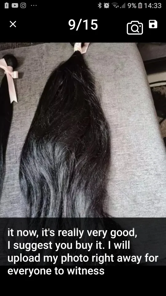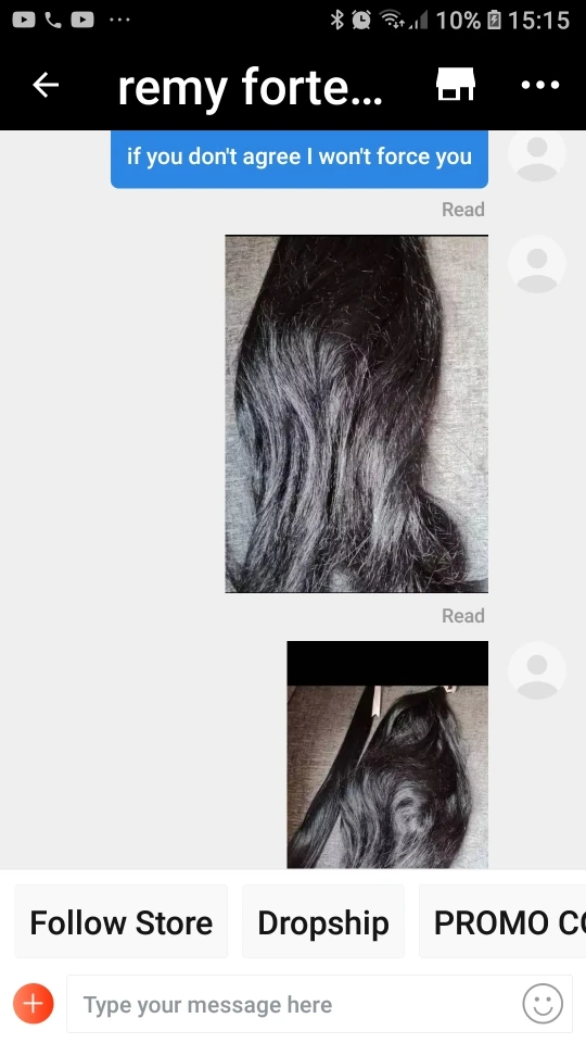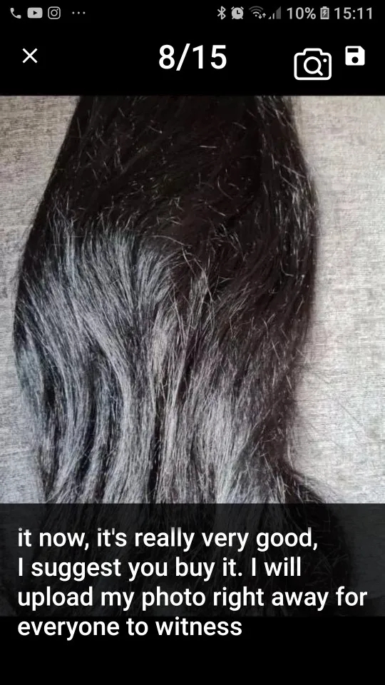 Я купил этот ворс, думая, что он хороший, когда он пришел, он был не очень хорош, он запутывается много, поэтому я связался с продавцом, а затем открыть спор, продавец сказал мне, чтобы я дал ему 5 Звезда, прежде чем он сможет получить доступ к моему спору, я дал ему быть, но теперь моя боль в том, что он использует мои фотографии, которые я отправил ему, чтобы оставить хороший комментарий на волосах, чтобы обмануть больше людей, чтобы купить Это