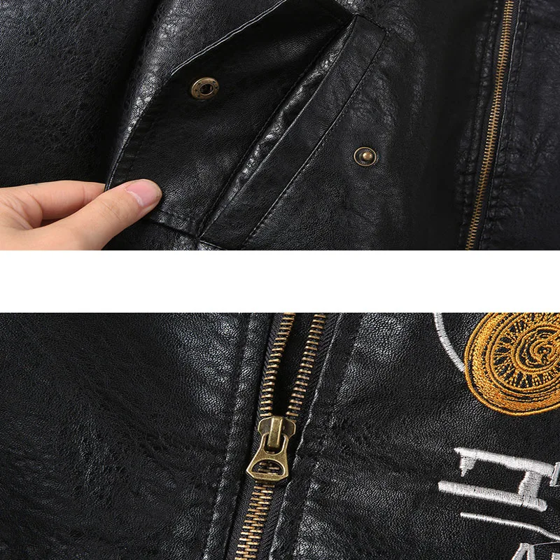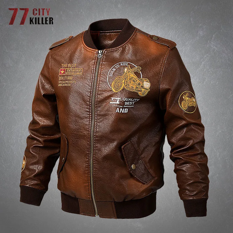 Мужские кожаные куртки и пальто, Мужская мотоциклетная флисовая кож...