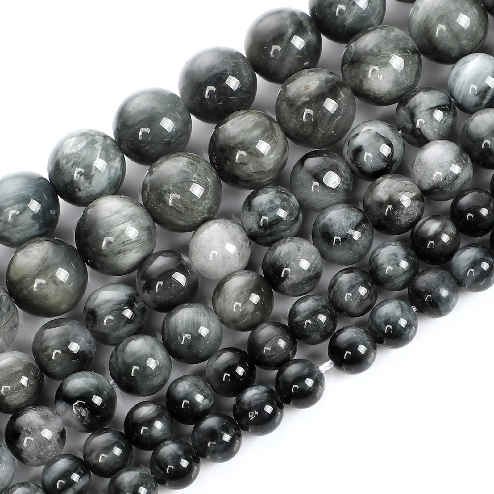 Круглые бусины из натурального камня, Серые Бриллианты в полоску дл...