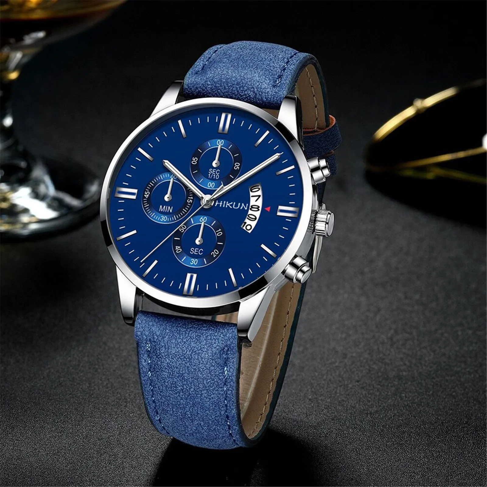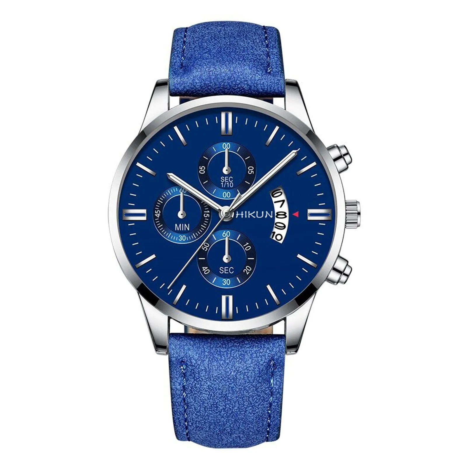 Часы мужские кварцевые с кожаным циферблатом, модные деловые брендо...