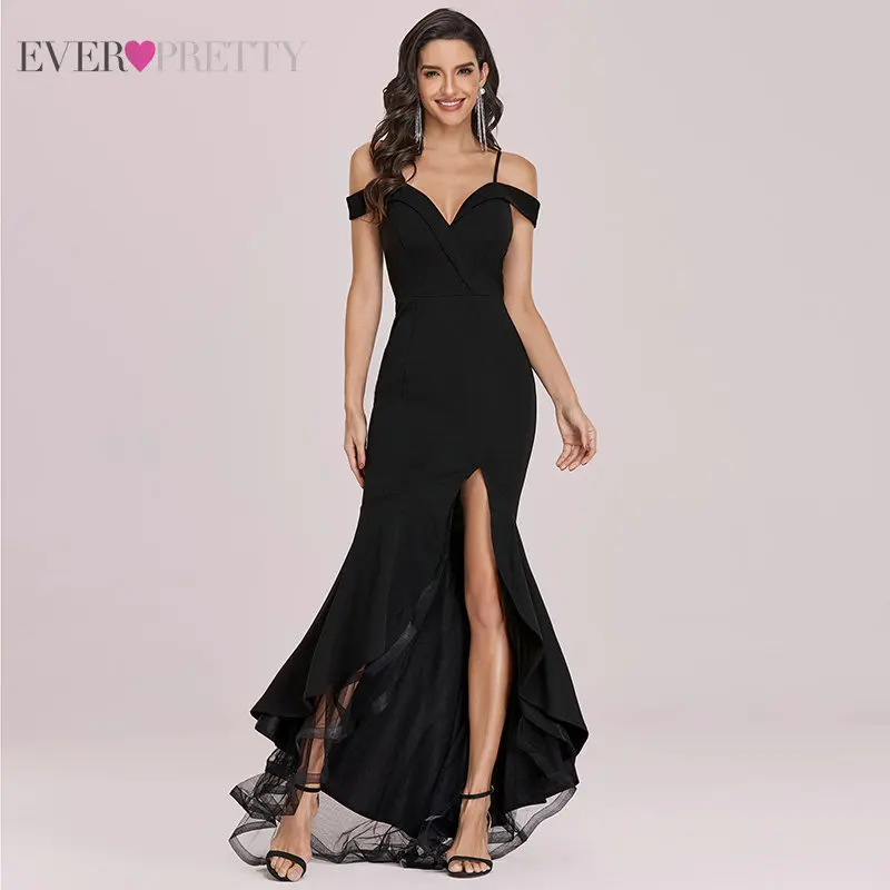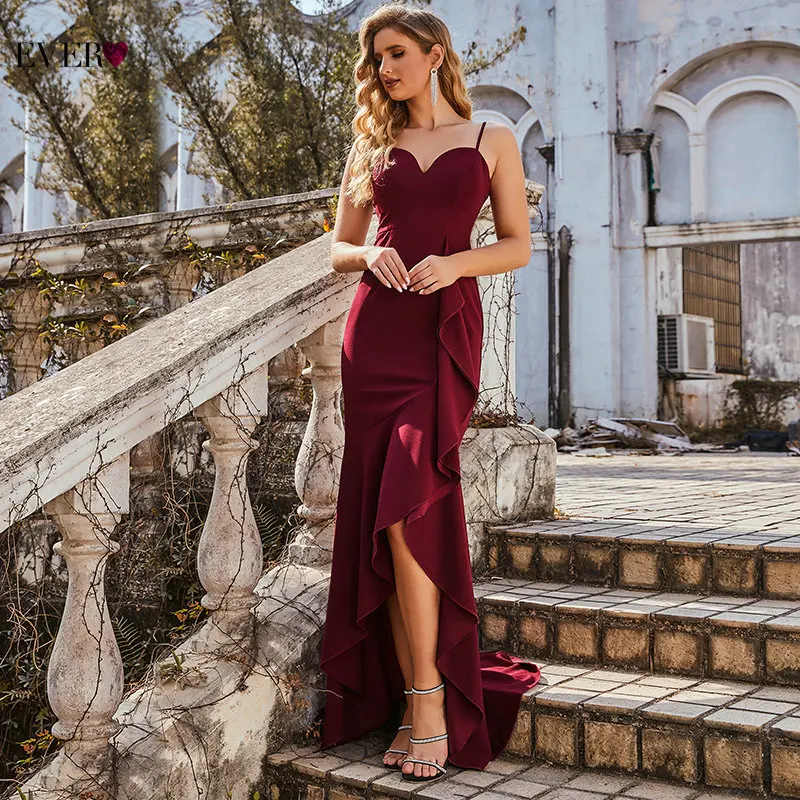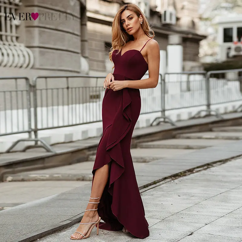 Платье Ever Pretty женское вечернее с V-образным вырезом, длинное пикантное, без рукавов, с глубоким разрезом, с оборками, EP00221, 2021