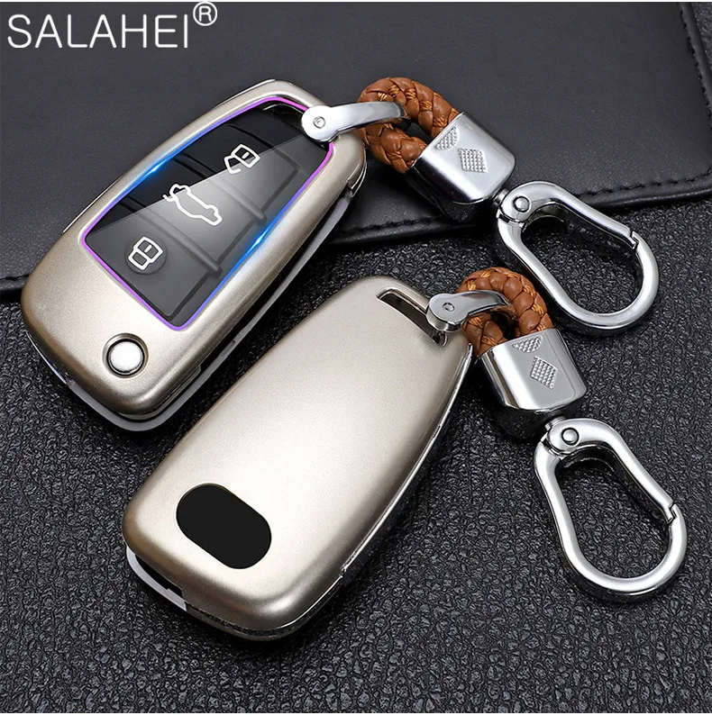 Чехол для автомобильного ключа из алюминиевого сплава и кожи, защит...