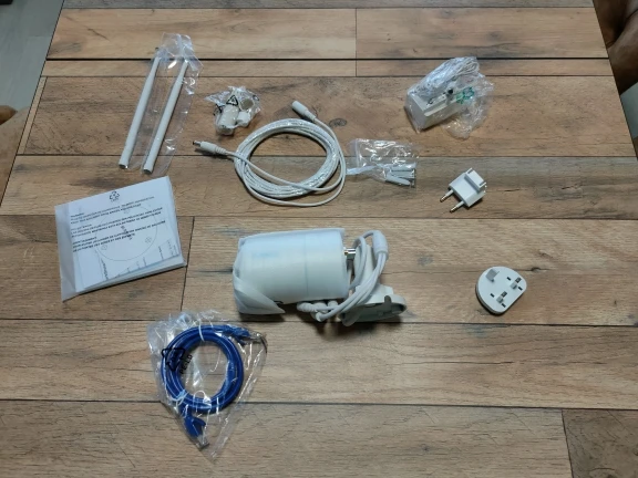 в комплекте блок питания 12 вольт и удлинитель питания 4 метра. хорошие камеры. первая настройка по проводу, потом может работать по вай-фай (либо оставить по проводу)