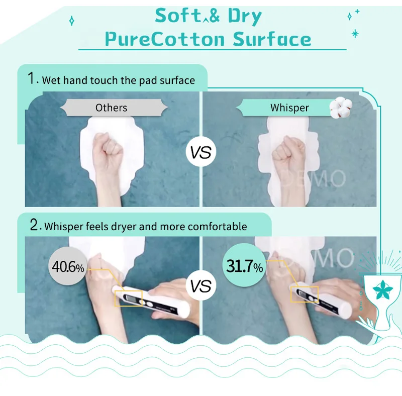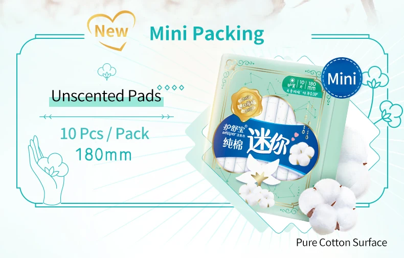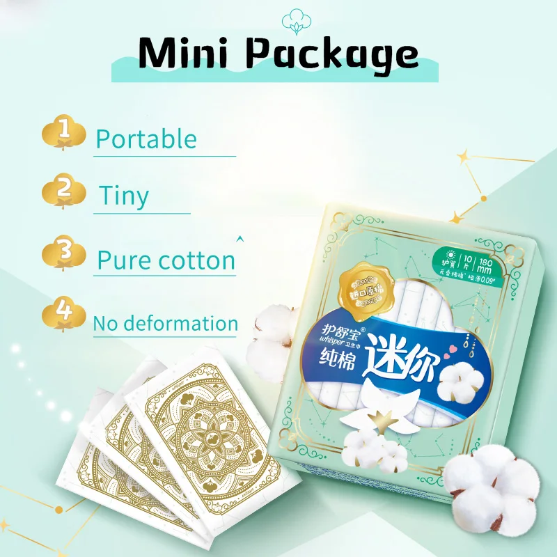 Гигиенические мягкие прокладки Whisper из чистого хлопка, длина 180 мм, 10 шт.упак.