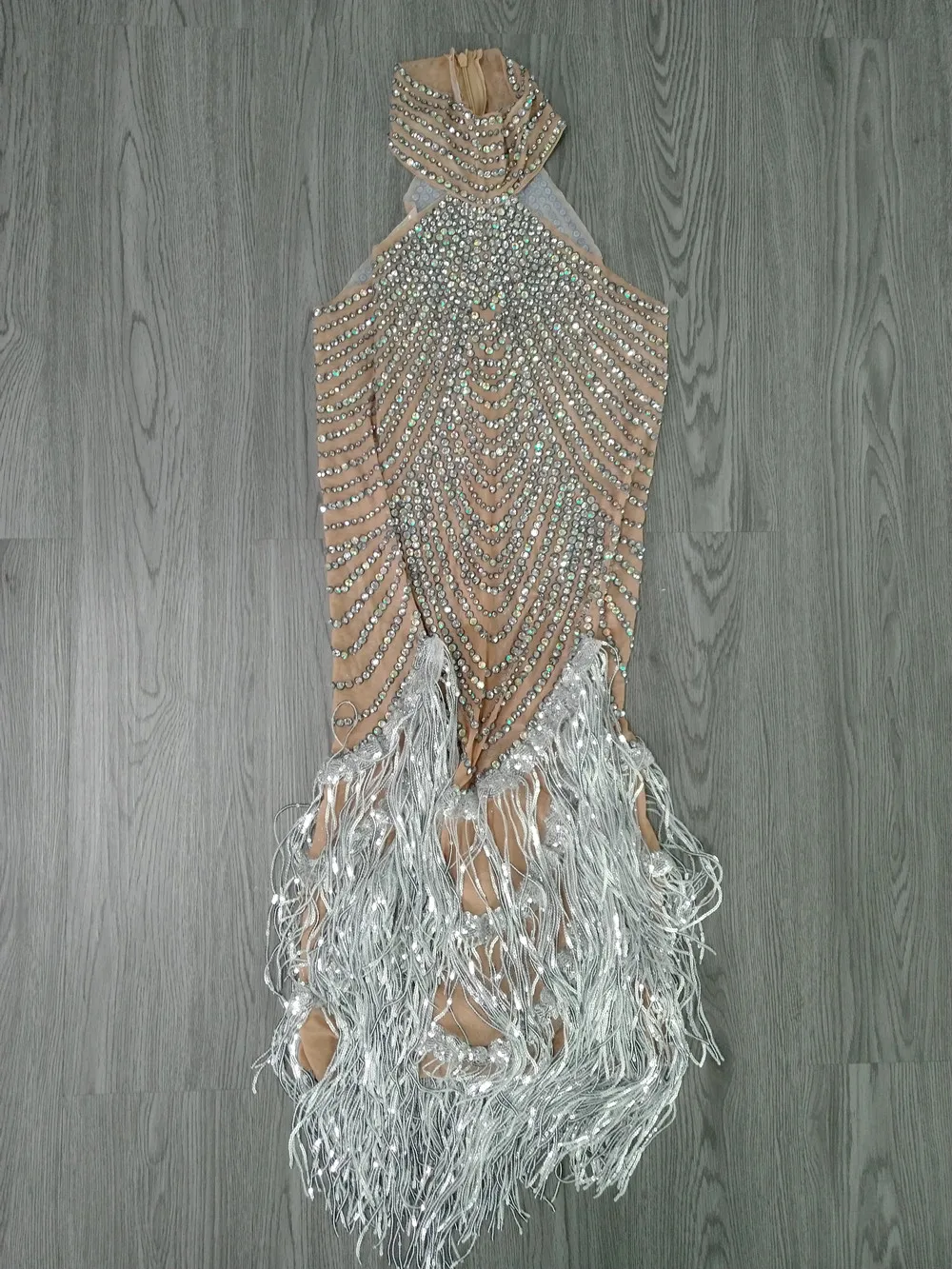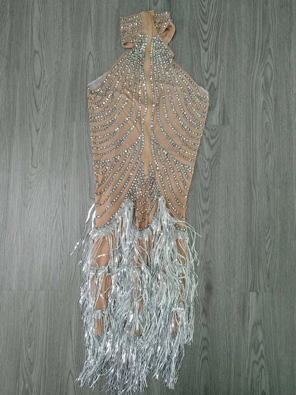 Стразы вечерние нее платье с кисточками женское сексуальное прозрачное платье с бахромой платье для ночного клуба короткое платье для латиноамериканских танцев сценические костюмы