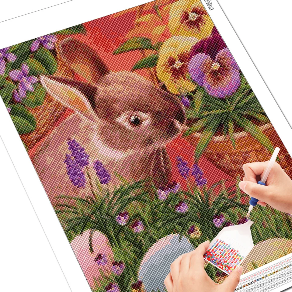 Алмазная вышивка с изображением пасхальных яиц, кролика, домашний декор