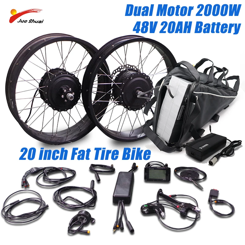 Фэтбайк с 2 двигателями диагональю 20, 26 дюймов, фэтбайк с батареей 2000 Вт, передний, задний, широкий, 48 В, 20 Ач, комплект для электрического велосипеда