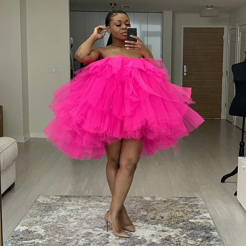 Пышное Платье ярко-розового цвета, цвета фуксии, тюлевые халаты для фотосессии, платье без бретелек, Многоярусное, черные платья из тюля для девочек, Vestidos 2021