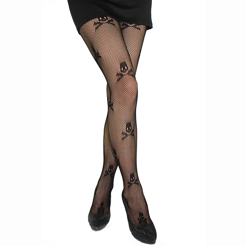 1 шт., сексуальные высокие колготки в сеточку, Сетчатые эластичные колготки в стиле панк с принтом черепа, Женские аксессуары, сексуальные чулки
