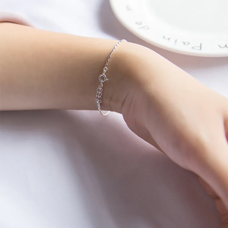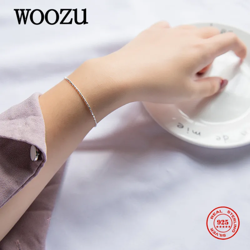 WOOZU натуральная 925 стерлингового серебра в минималистском стиле с геометрическим узором из бисера браслет, браслет на запястье для женщин подростков шик моды ювелирные изделия аксессуары