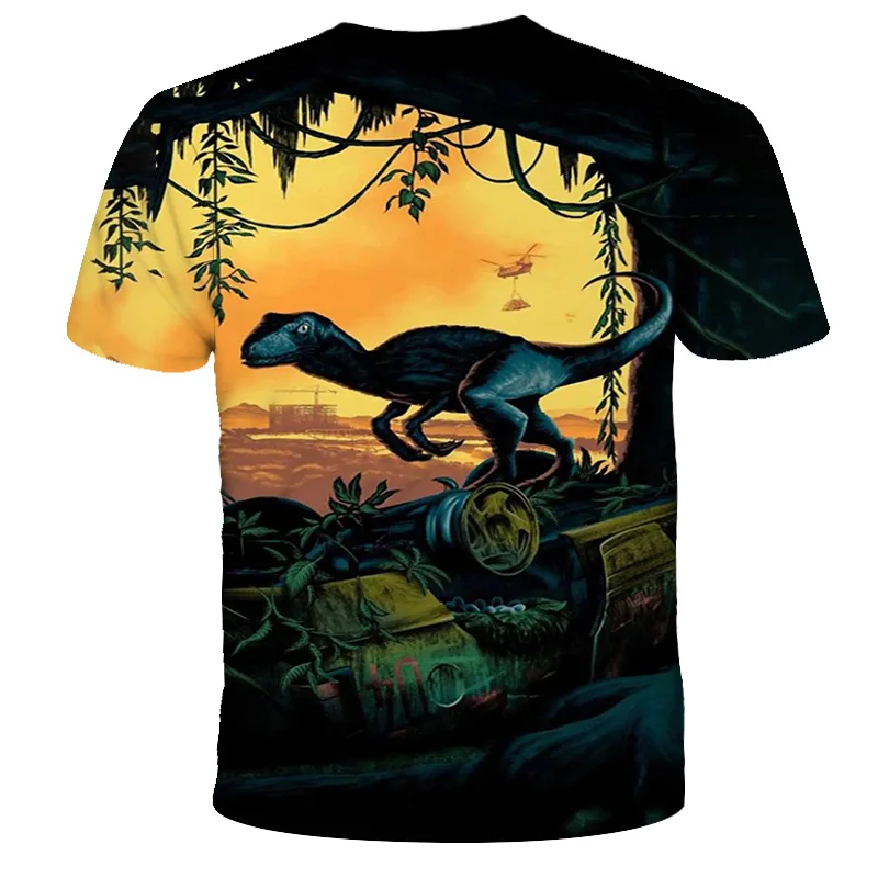 Футболка детская с забавным динозавром, повседневный летний топ с 3D рисунком парка Юрского периода, одежда для маленьких мальчиков