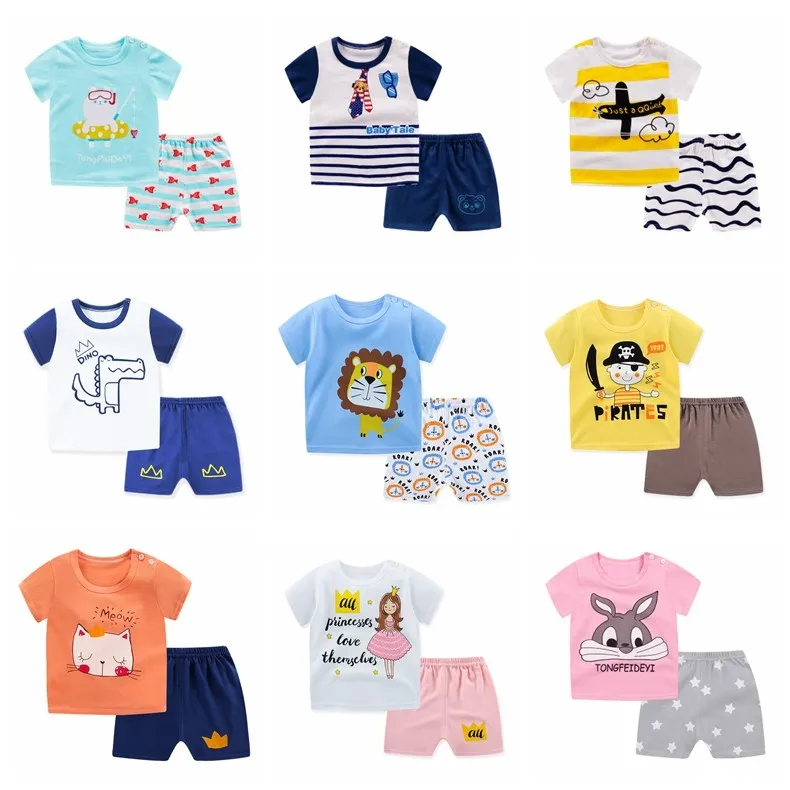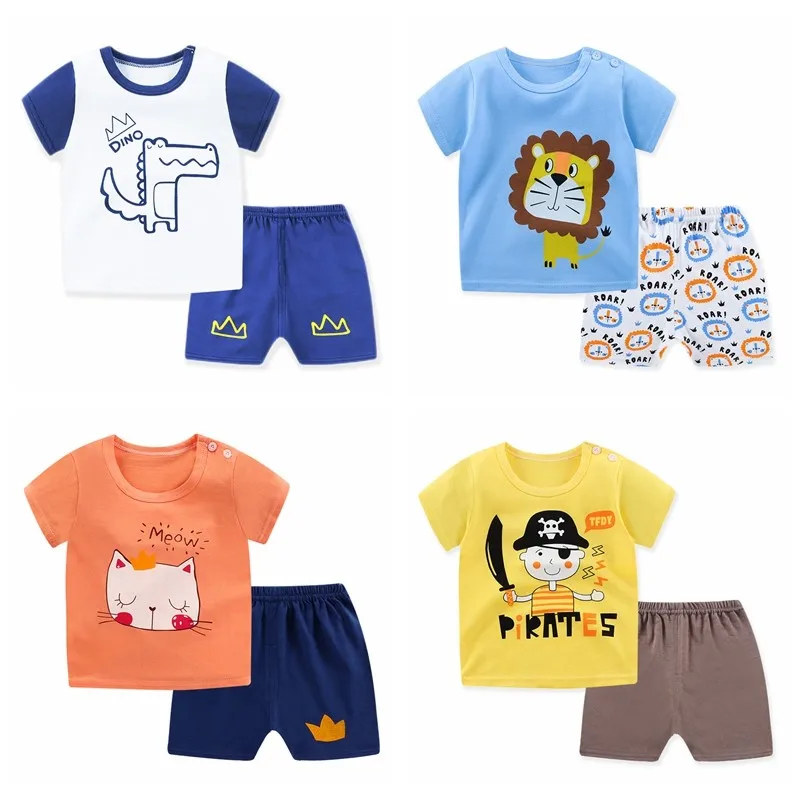 Повседневный летний костюм для малышей, пуловер с круглым вырезом, Одежда для младенцев, детская одежда, комплект из 2 предметов, Детский Повседневный костюм, комплект
