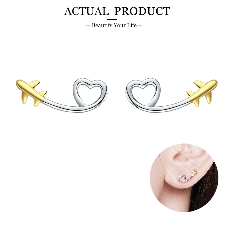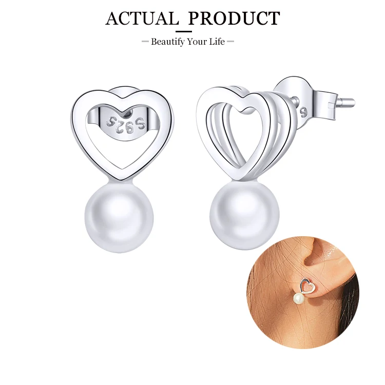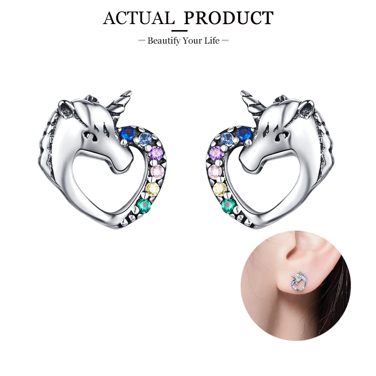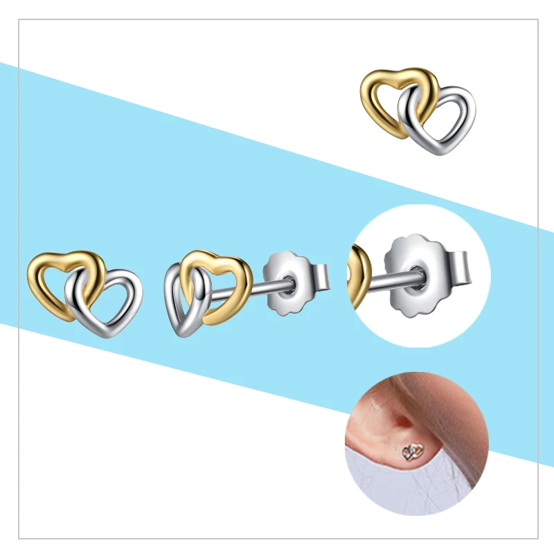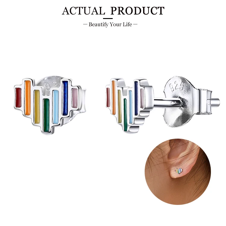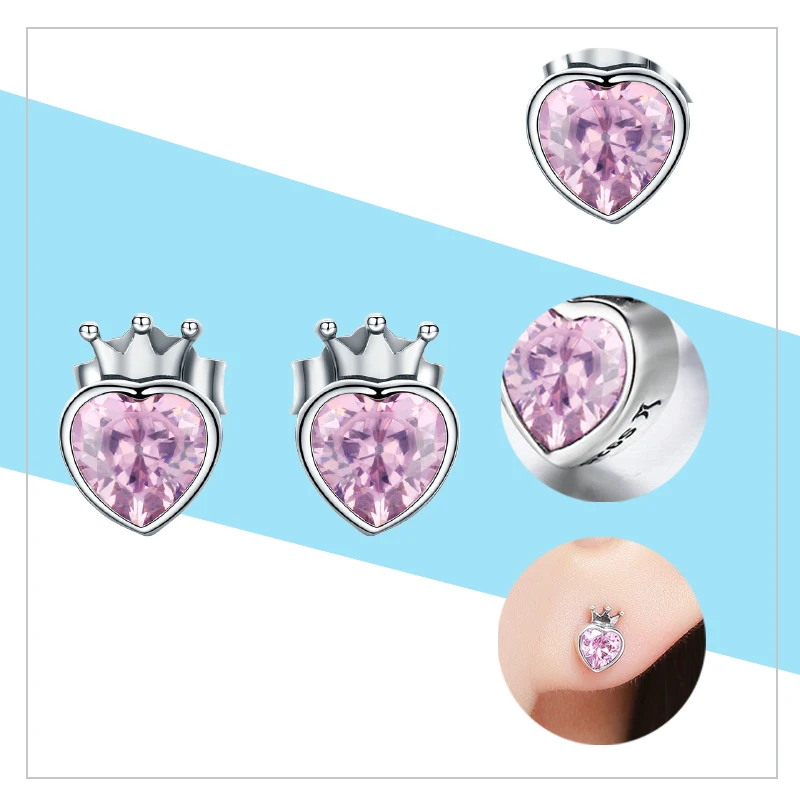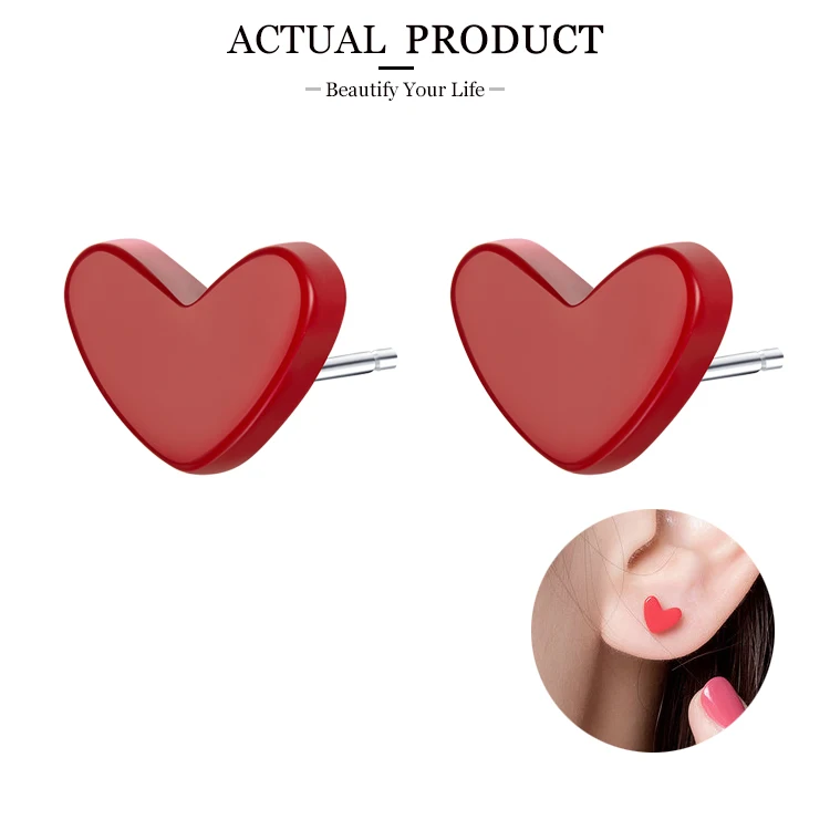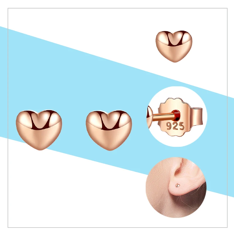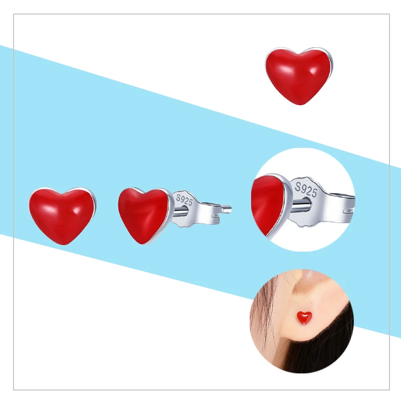 Женские серьги-гвоздики из серебра 925 пробы с эмалью и розовым золотом и красным сердцем, оригинальные ювелирные украшения