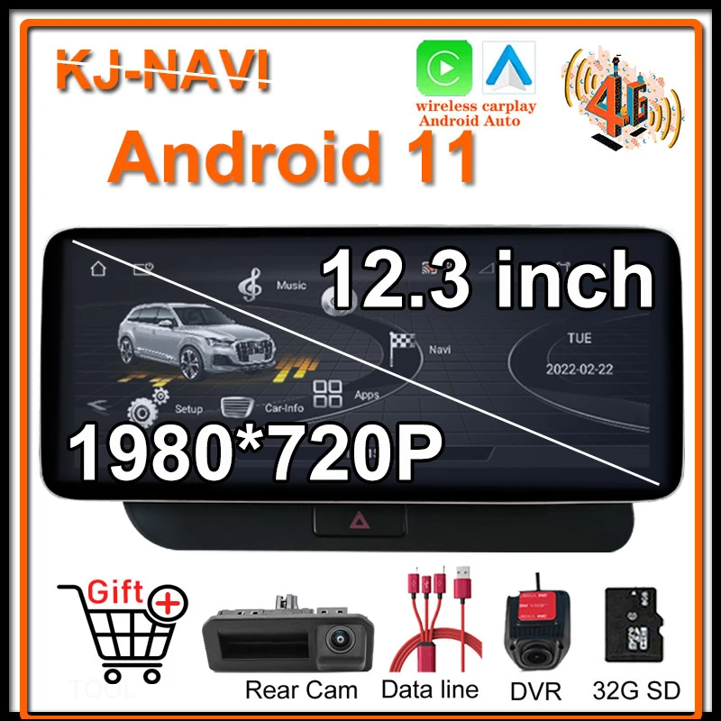 Автомобильный мультимедийный плеер CARPLAY, 12,3 дюйма, 64 ГБ ОЗУ, Android 11, GPS-навигация для Audi Q5 2009 -2017