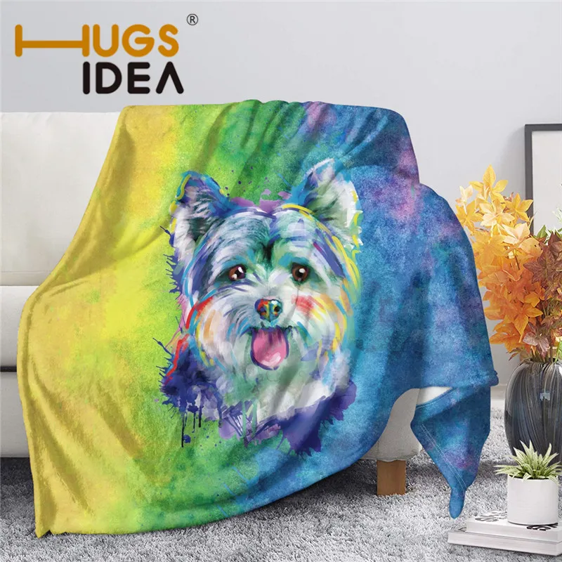 Одеяло с радужным принтом животных, йоркширский терьермопскоргиWestieтакса, собака, Флисовое одеяло до колена, одиночное осеннее одеяло
