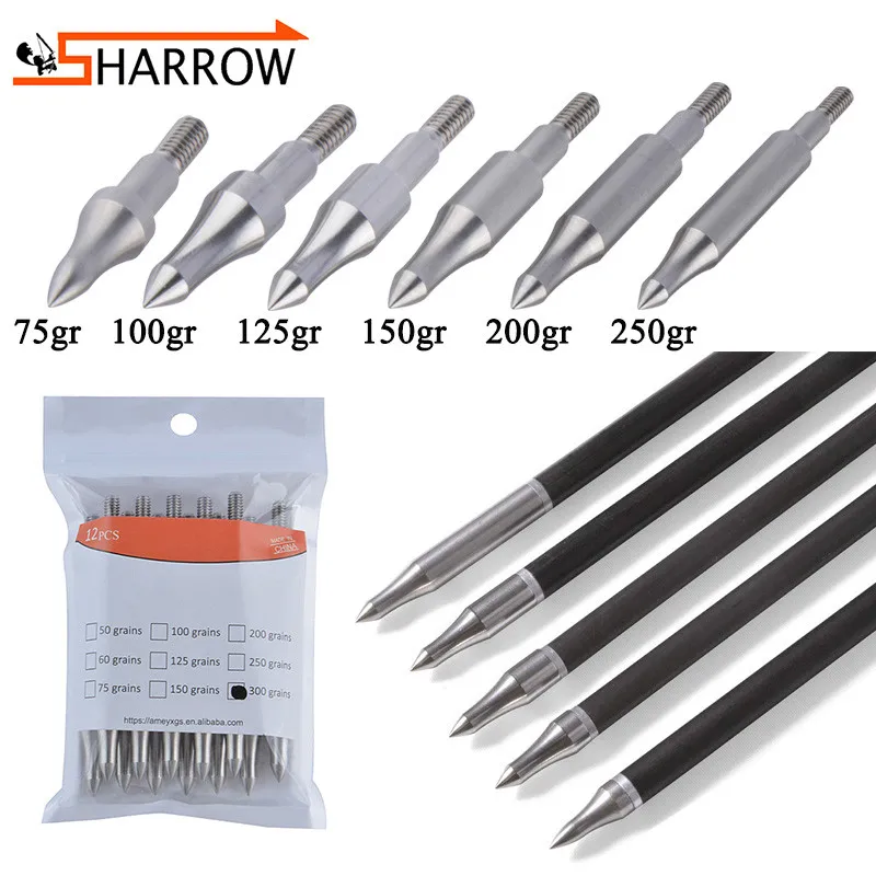 Наконечники для стрельбы, 12 шт., стальные наконечники для стрел, 75-300grain, 8-32 наконечники для стрел, Охотничьи аксессуары