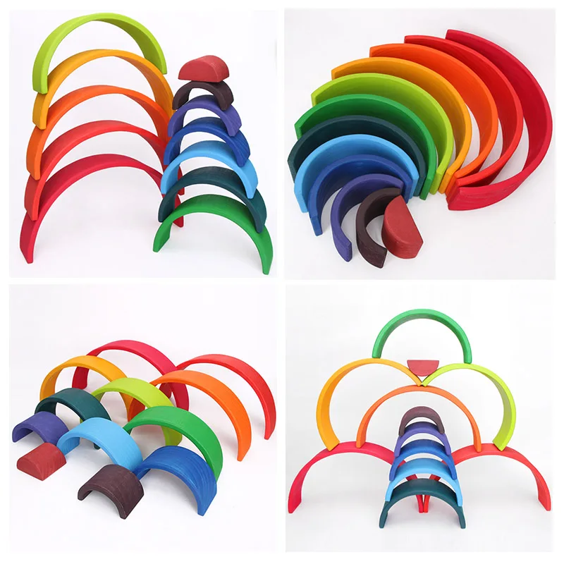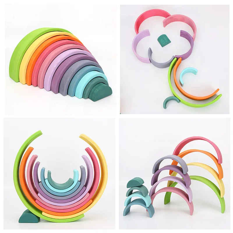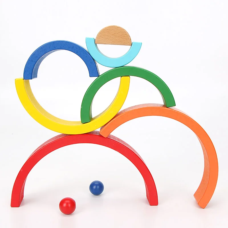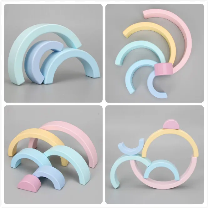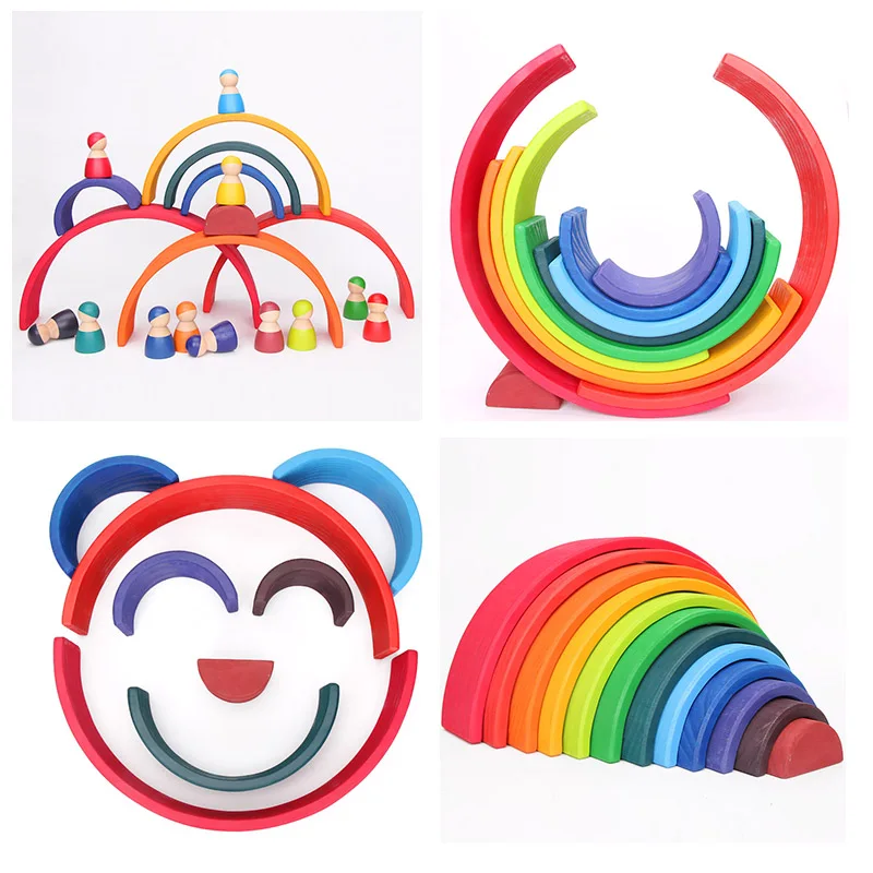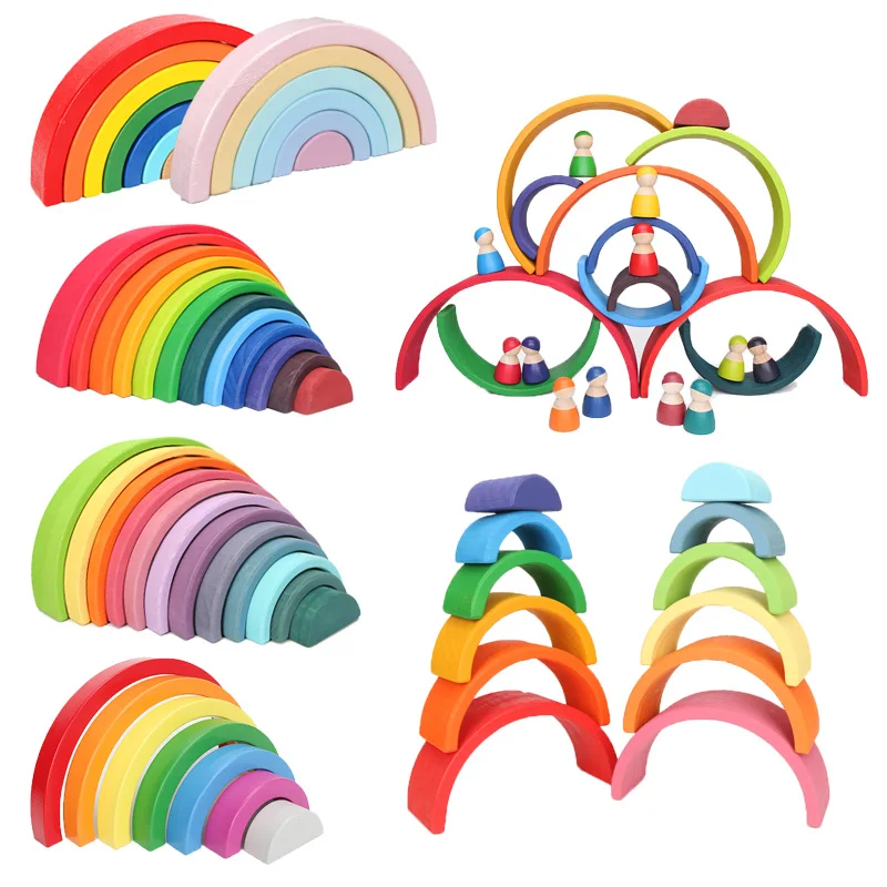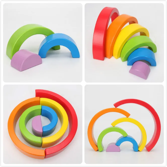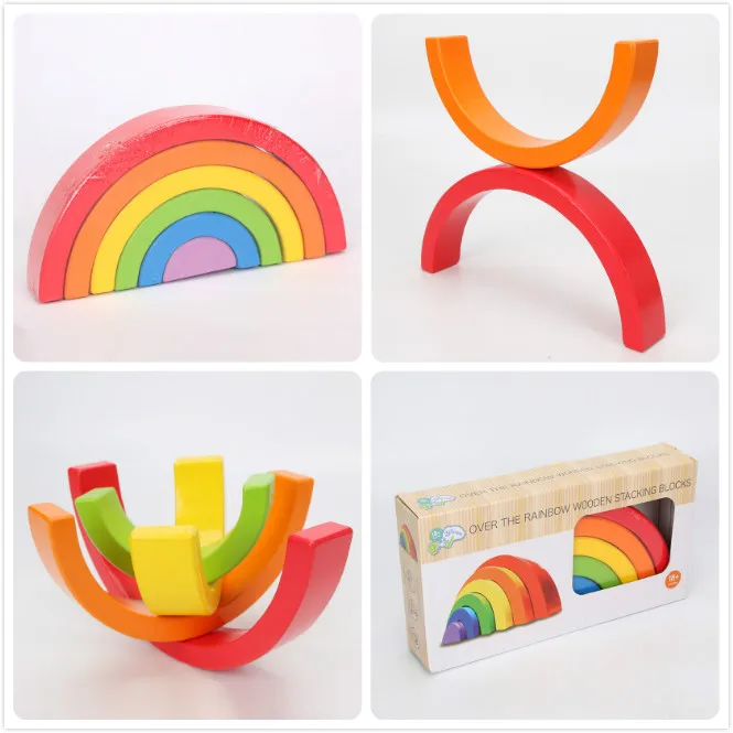 Деревянный Радужный блок красочный деревянный Радужный штабелер для детей Монтессори обучающая детская игра для укладки радужные строительные блоки