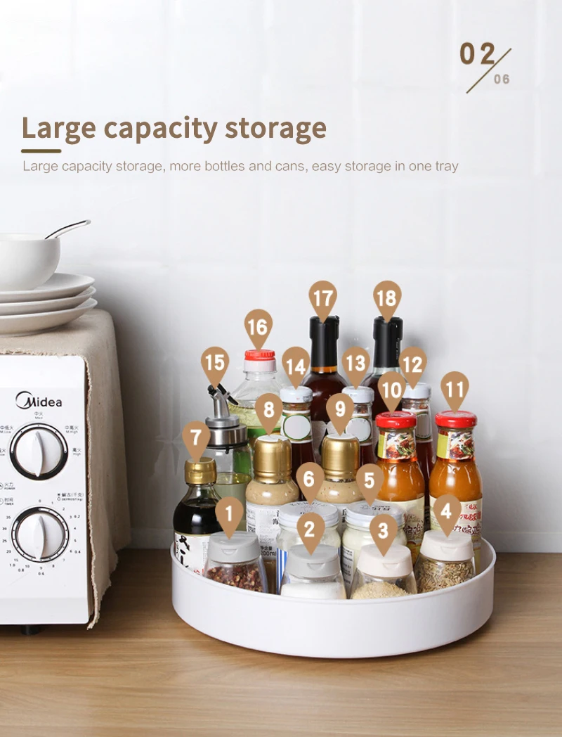Вращающийся на 360 градусов дизайн: этот органайзер работает на плавном скольжении, шариковых подшипниках для легкого вращения каждый раз. Это позволяет легко добраться до каждого элемента, даже когда он хранится на верхних полках