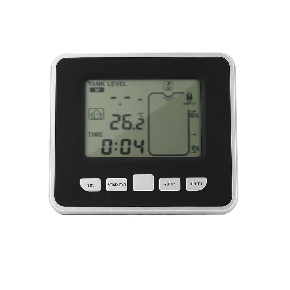 Особенности:Этот счетчик мониторов бака жидкости глубина уровня и отображает на 10-элемент ЖК-дисплей столбчатую диаграммуОн может держать минимальную/максимальную запись уровня жидкости в бакеПоддерживает уровень жидкости в резервуаре высокого/низкого уровня сигнализации и резервуар для жидкостиОтображает температуру в помещении (℉ или ℃) и температуру в резервуаре (℃ или ℃) одновременноПриемник можно поставить на стол или повесить на стену.Описание:Держите глаз на открытом резервуаре для воды от комфорта вашей собственной гостиной, до 100 м.