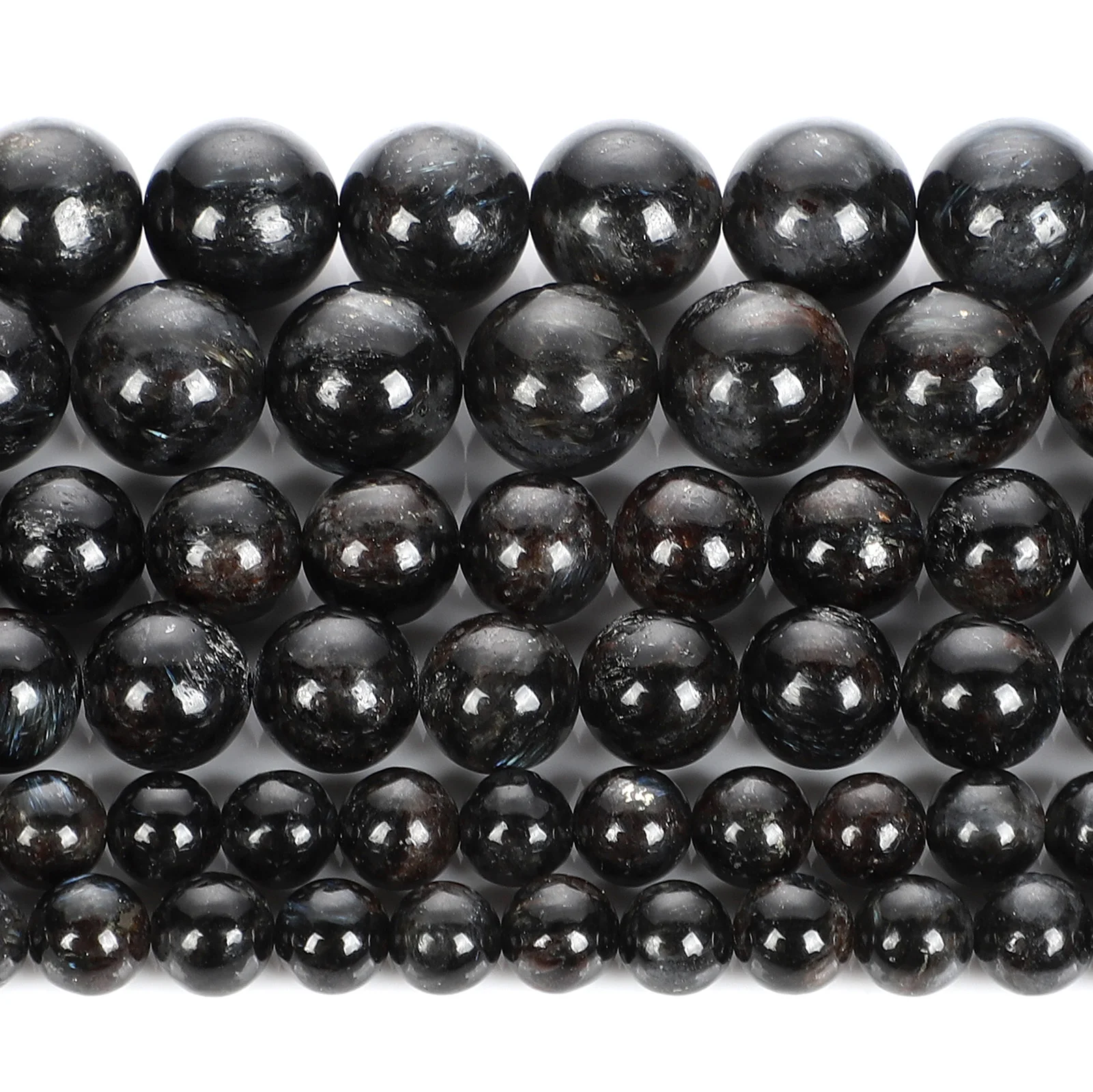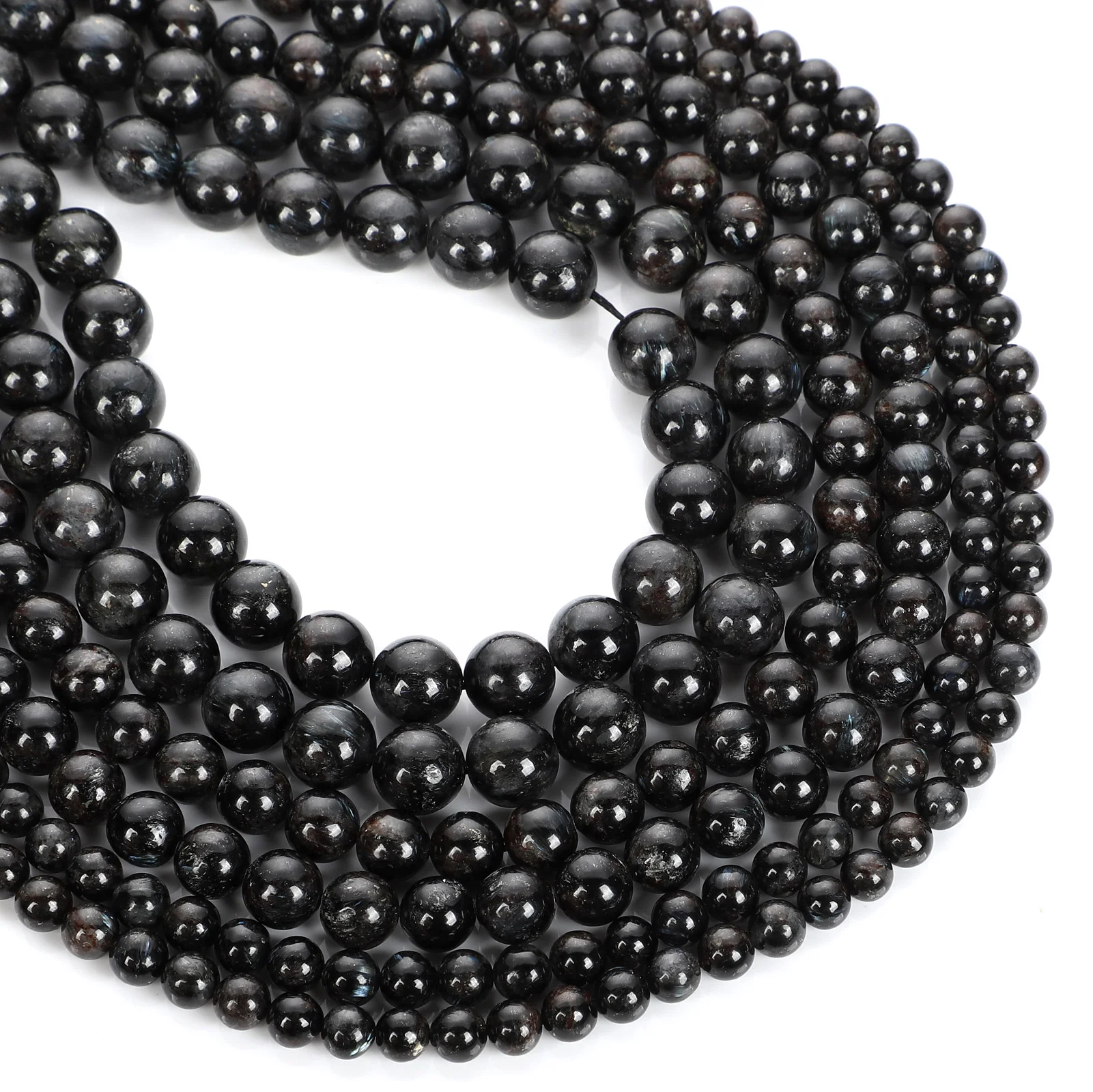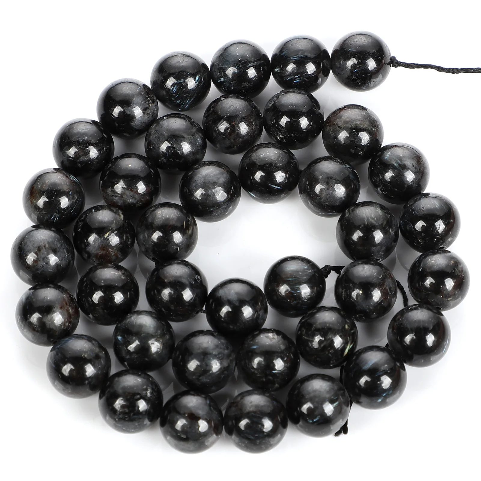 Бусины из натурального черного камня, круглые свободные бусины, акс...
