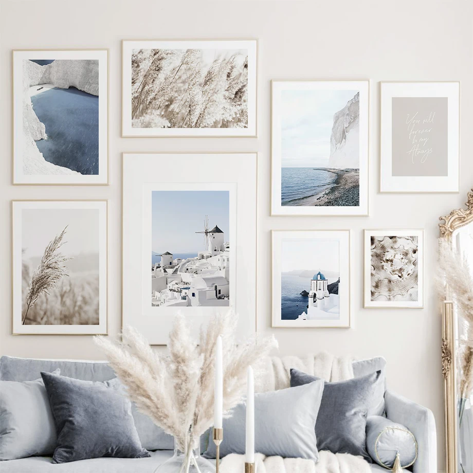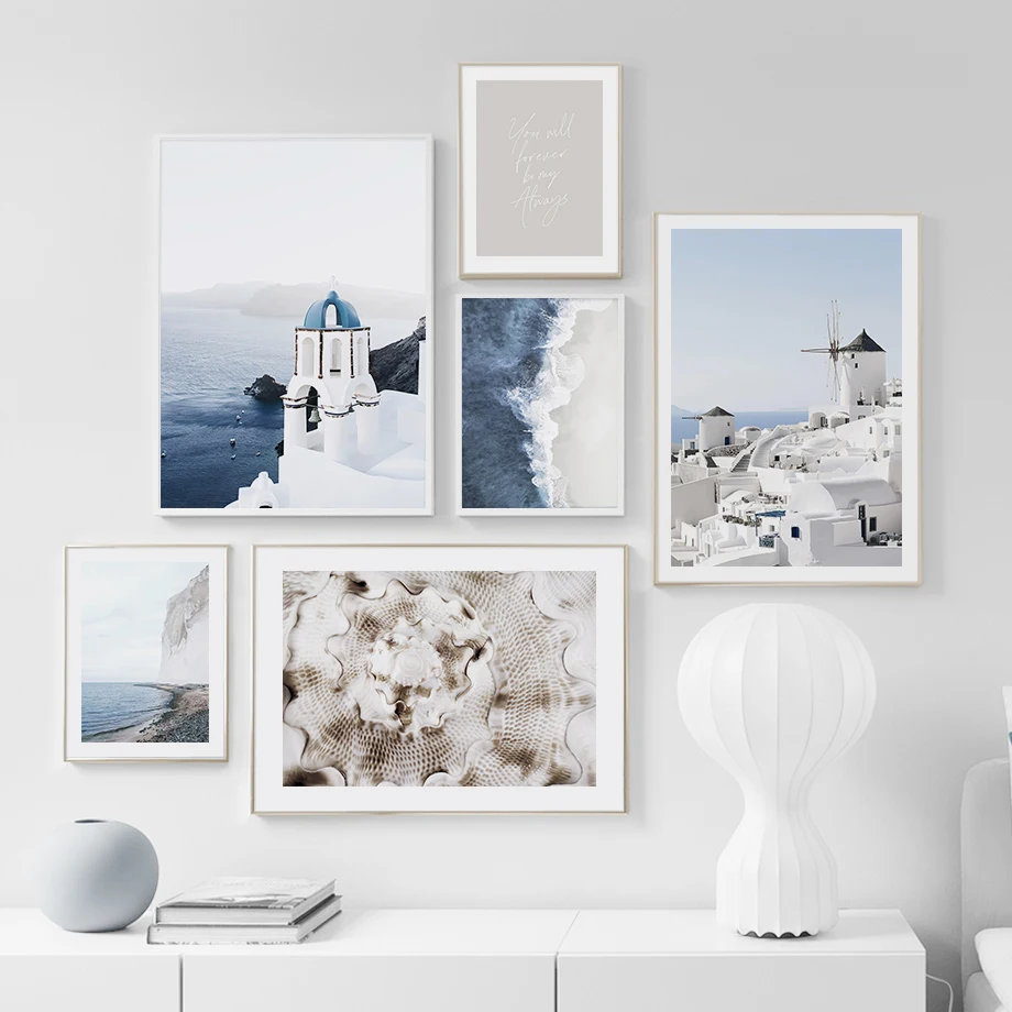 Настенная живопись на холсте Санторини, белые постеры с синим океаном в скандинавском стиле, настенные картины для гостиной, домашний декор