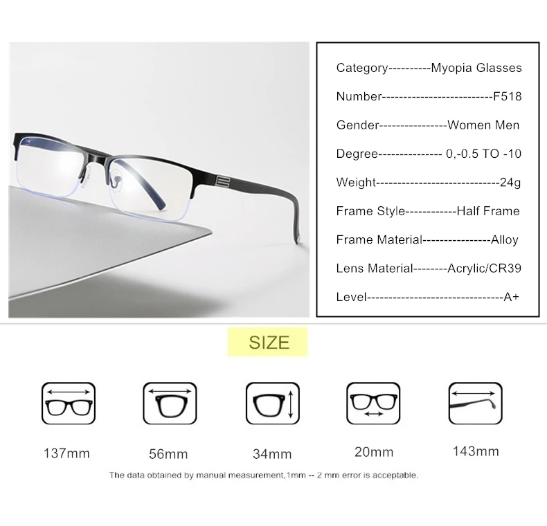 Очки для близорукости от-0,5 до-10 для мужчин и женщин, защита от синего света или фотохромные, очки по рецепту на заказ диоптрии, очки для зрения, F518
