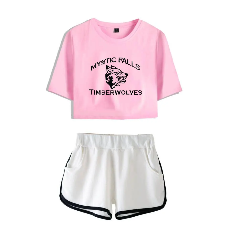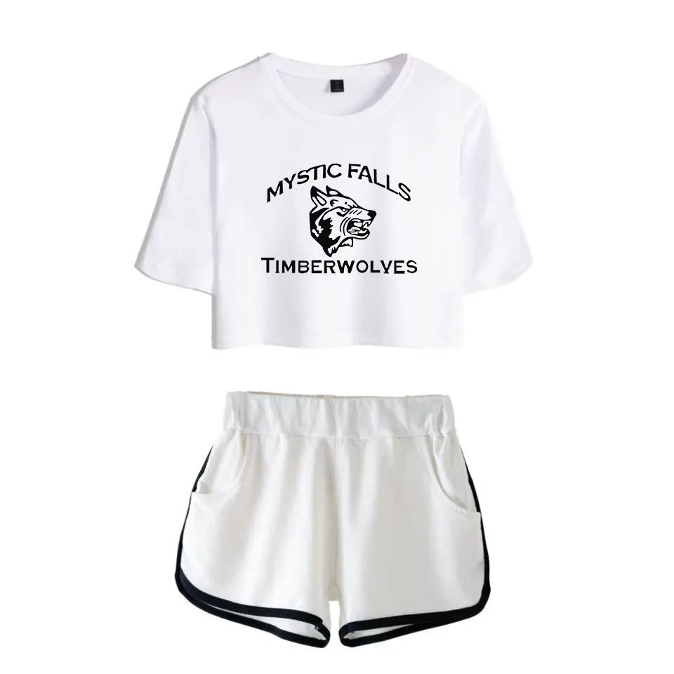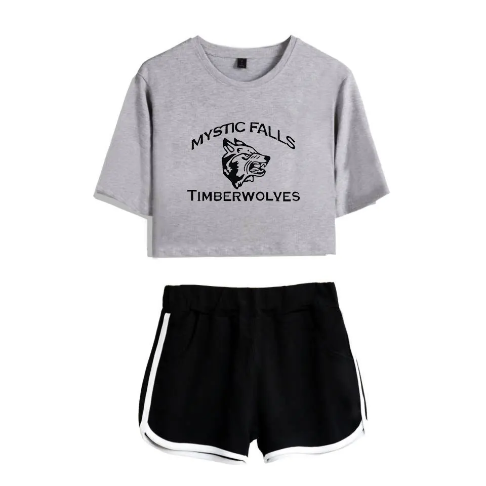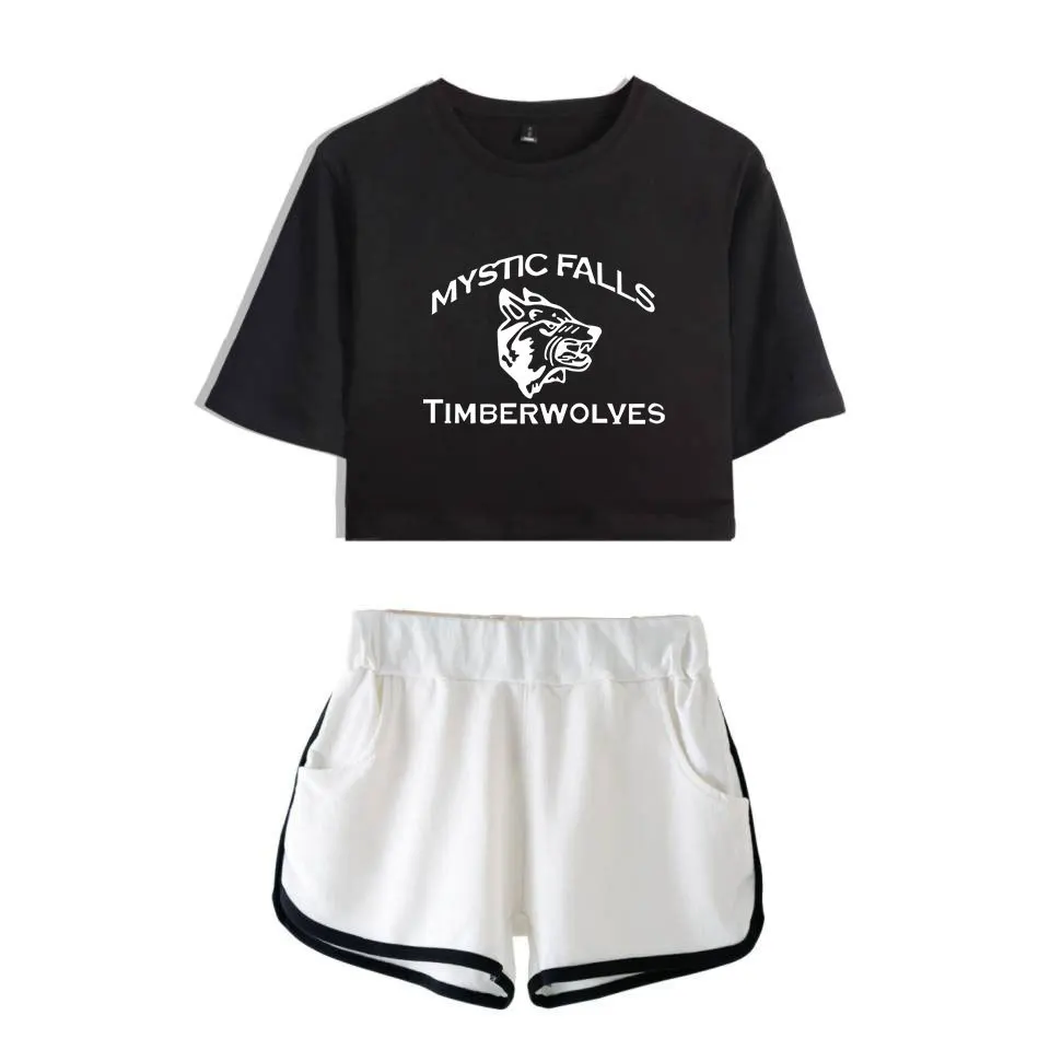 Женский комплект из двух предметов с шортами и дневниками вампира, повседневный спортивный костюм с короткими рукавами, летний спортивный костюм