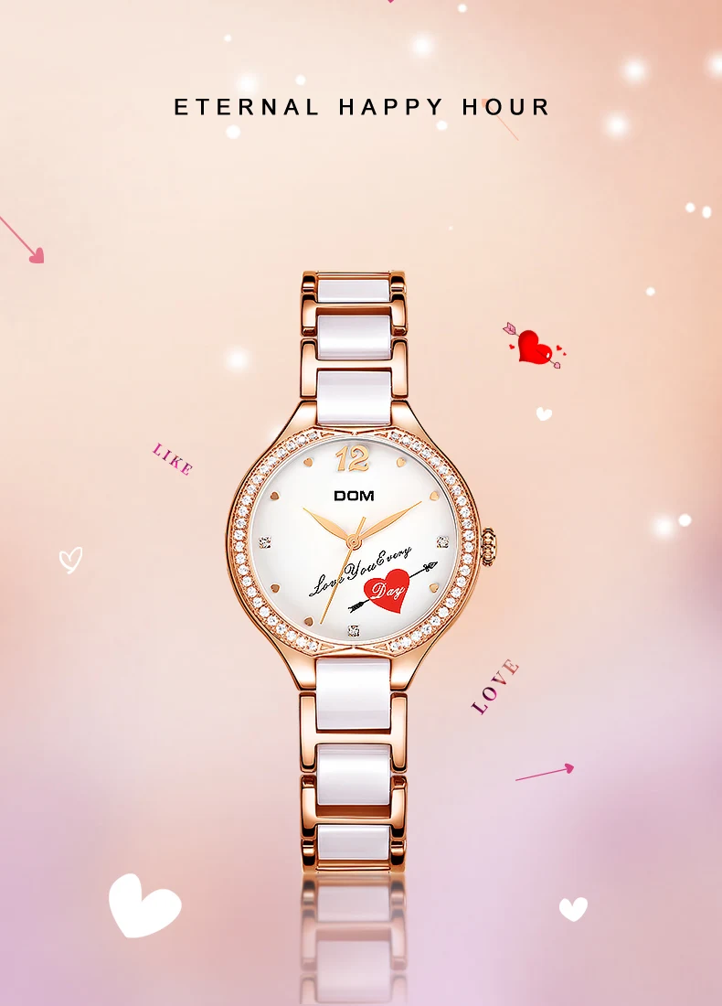 Бренд: DOM-Дисплей: кварцевые часы-Стиль: Модный, Повседневный, роскошный, платье-Особенности: ВодонепроницаемостьОсновная особенность:-100% новый с биркой и высокого качества;-Водонепроницаемость 3 АТМ/30 м (поддержка холодного душа и плавания, не использовать часы под водой, не поддерживает горячую воду);-Качественный чехол из цинкового сплава;-Качественный керамический ремешок Приближение спецификации:-Диаметр чехла: 3 см-Толщина чехла: 0,85 см-Ширина ремешка: 0,9 см-Общая длина: 18,4 см Посылка-1 часы DOM-1 коробка DOM