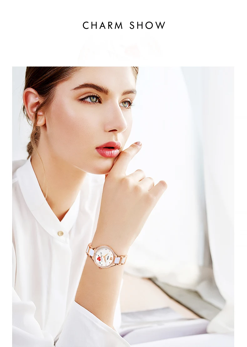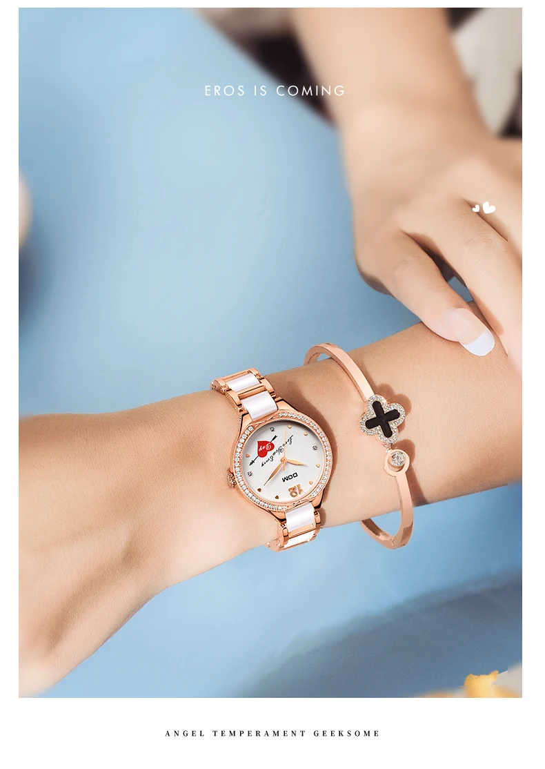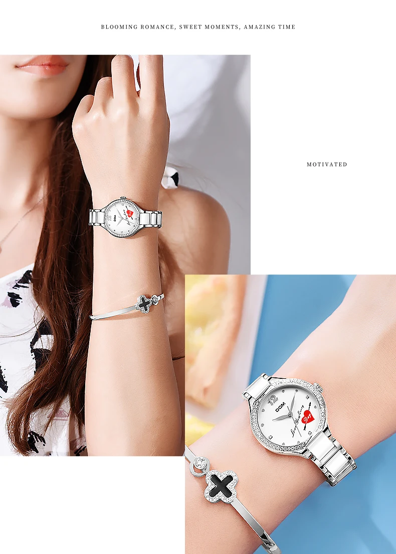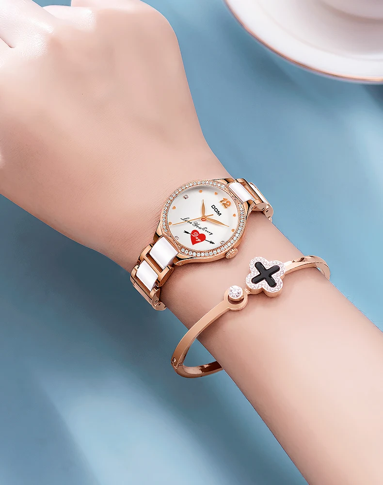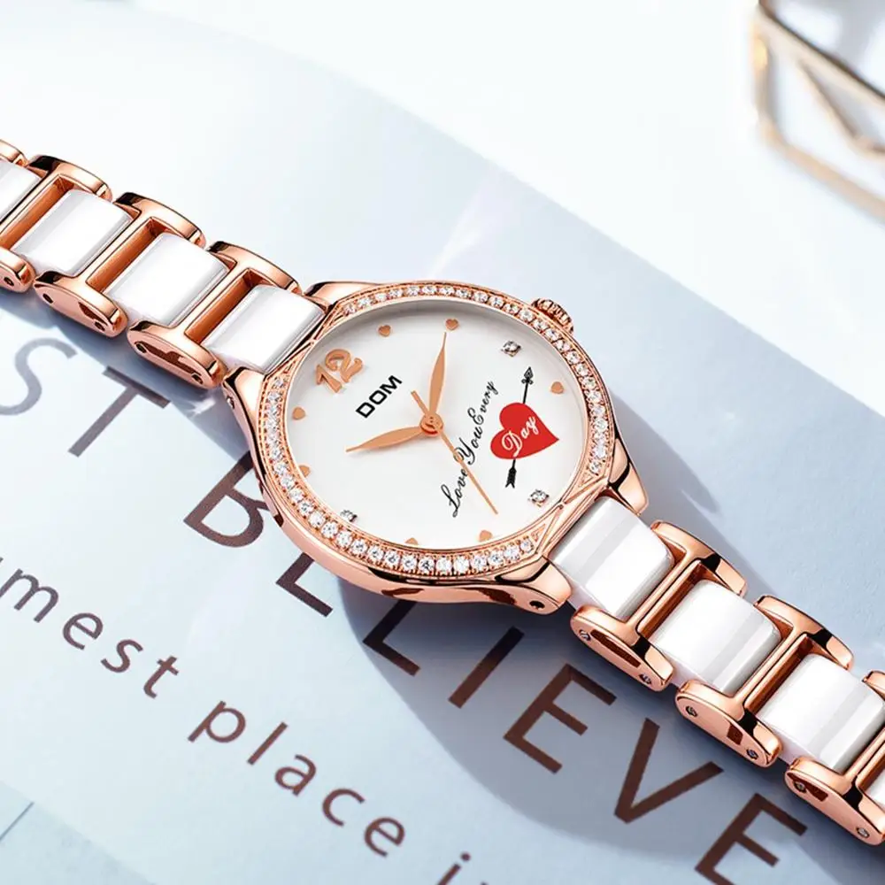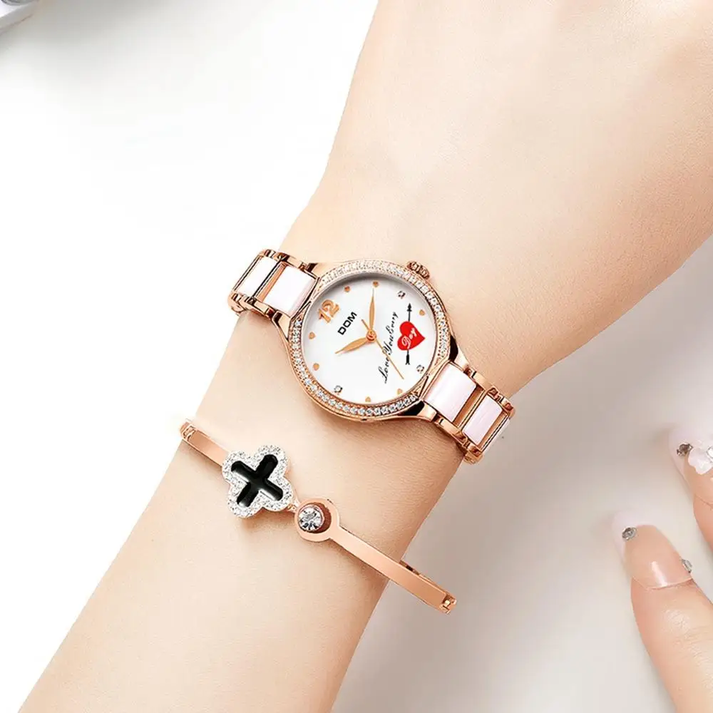 Часы DOM женские кварцевые с керамическим ремешком, со стразами, G-1271G-7MX