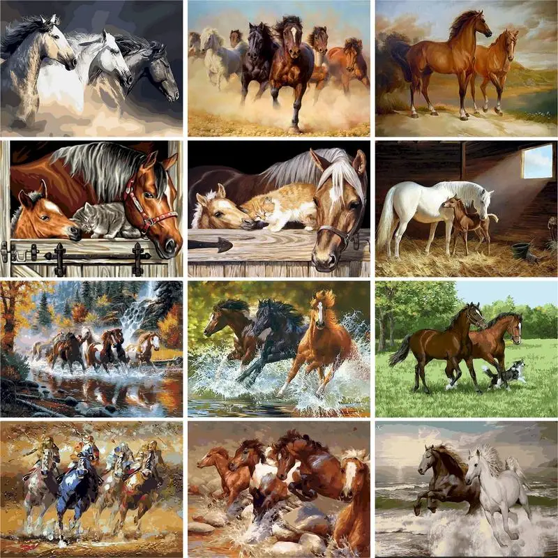 Набор для рисования по номерам на холсте, Раскрашивание лошади, жив...
