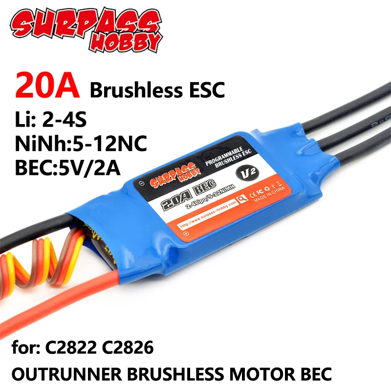 Бесщеточный двигатель SURPASS Hobby C2826 10001350кв 20A ESC контроллер скорости двигателя BEC 2-4S для радиоуправляемого FPV самолета с неподвижным крылом
