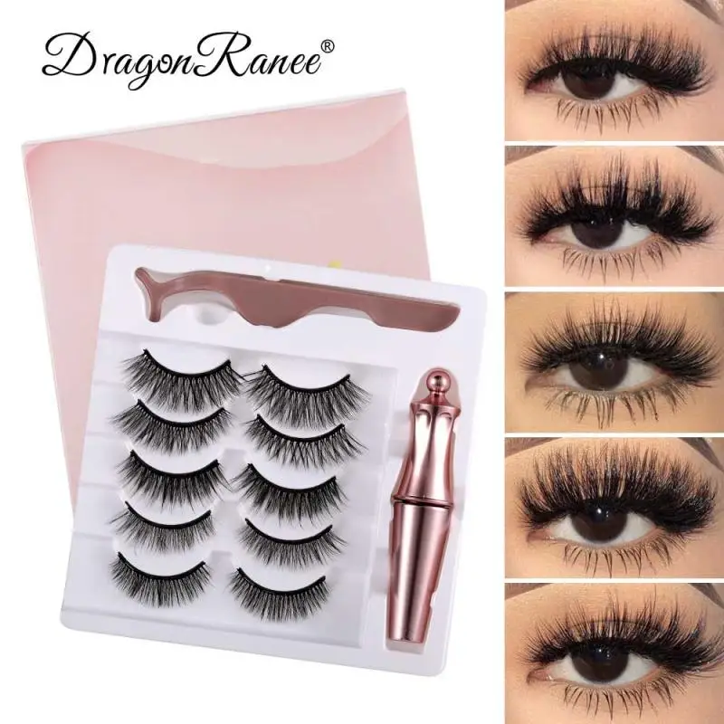 Набор Натуральных магнитных ресниц 5 пар, накладные ресницы 3d, норковые ресницы с водонепроницаемой жидкой подводкой для глаз и пинцет для макияжа