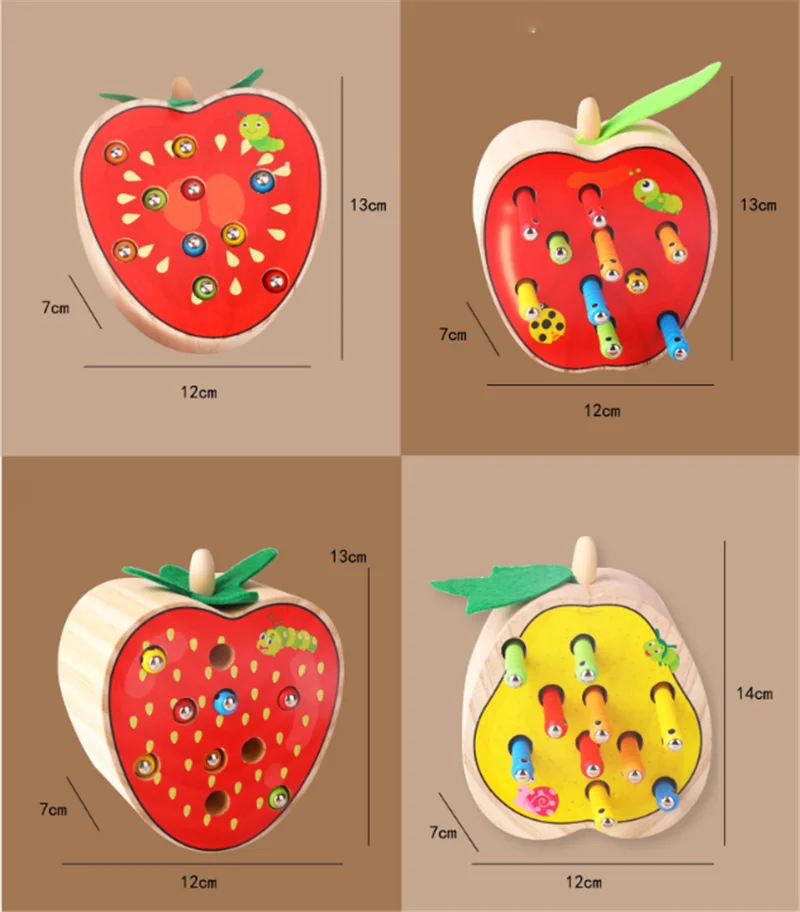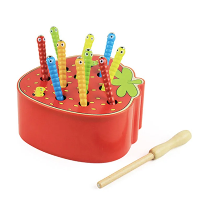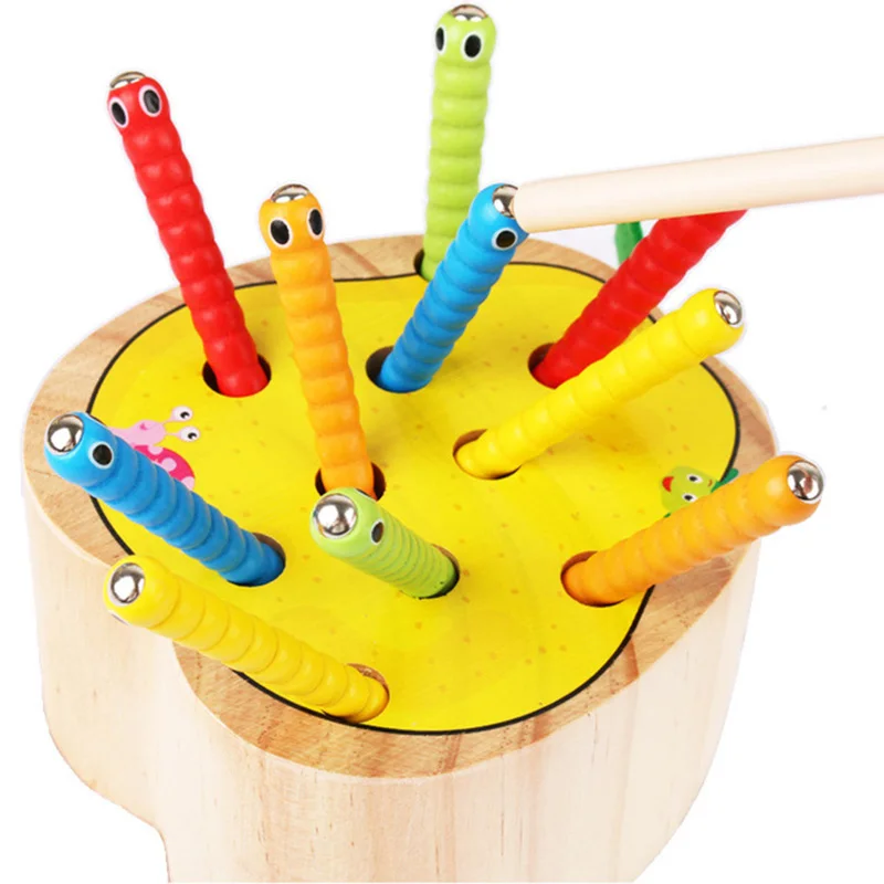 Головоломка Монтессори игрушки Детские деревянные игрушки магнитные Поймай червей клубника 3D Пазлы обучающая игра рыбалка цветная Математика для детей
