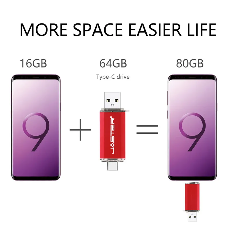 Флэш-накопитель JASTER Type-C OTG USB 3,0 объемом 64 ГБ, 32 ГБ, 16 ...