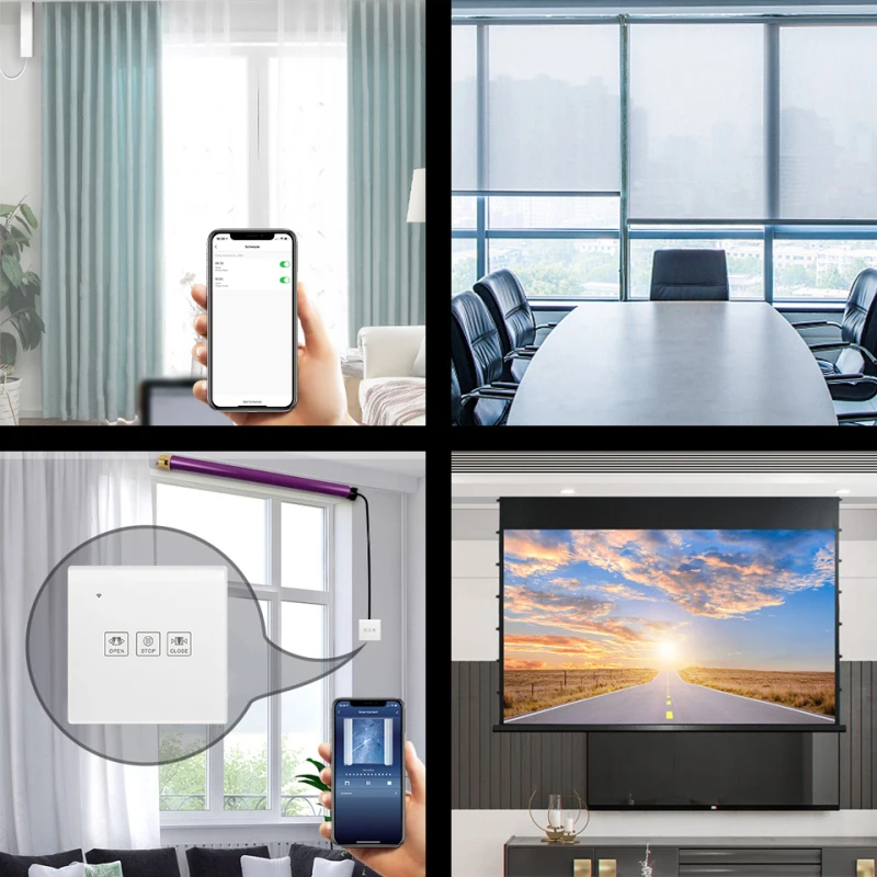 2. Сочетание различных сценариев: подходит для различных видов штор, таких как оконные жалюзи/рулонные жалюзи/венецианские жалюзи. Установите умный выключатель для штор во многих местах, таких как офис/кабинет/спальня/гостиная и т. Д., даже Управляйте тентом во дворе.