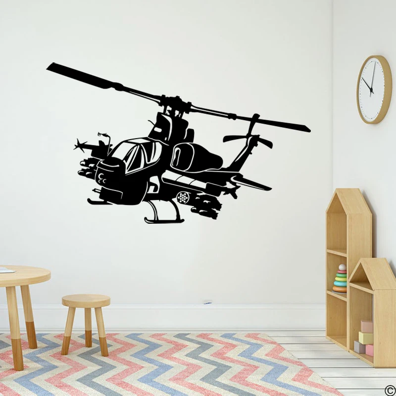 Большая настенная наклейка в виде вертолета, самолета, самолета, военного оружия, Настенная Наклейка для детской комнаты, виниловый домашний декор