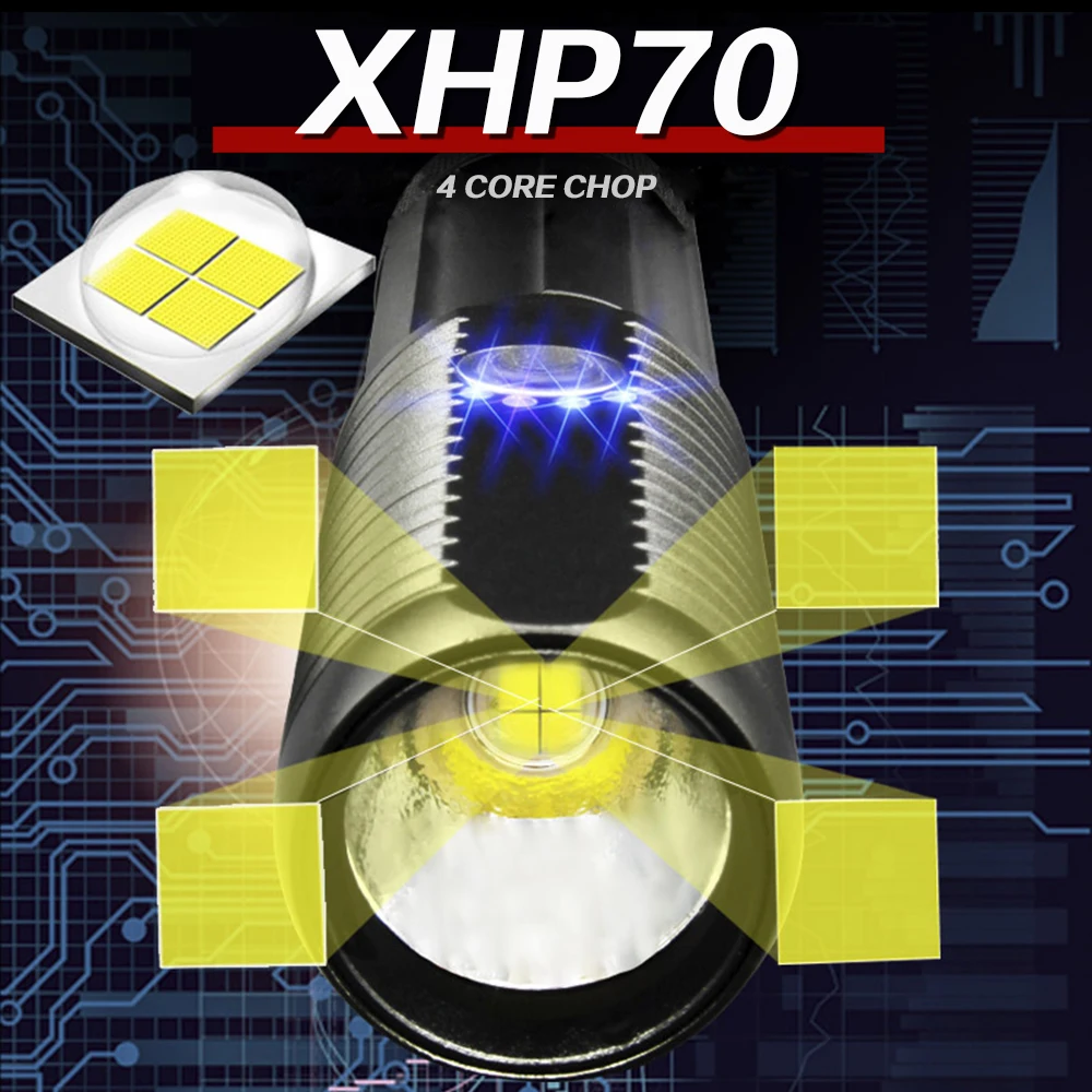 Супер яркий XHP70 светодиодный фонарик USB Перезаряжаемые фонарь с приближением, светодиодный тактический фонарь Применение 18650 26650 Батарея для кемпинга Пеший Туризм