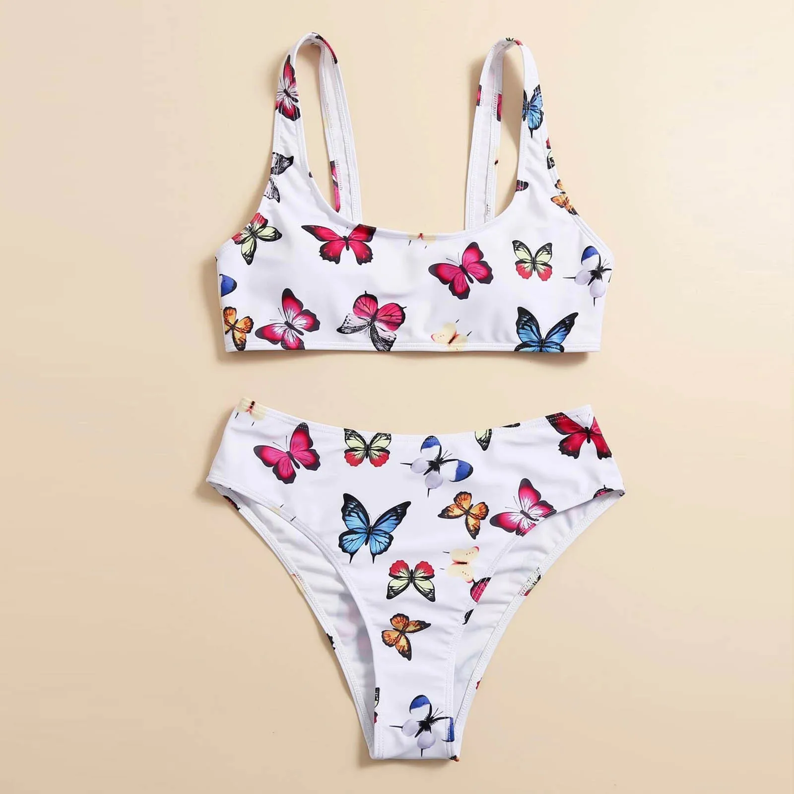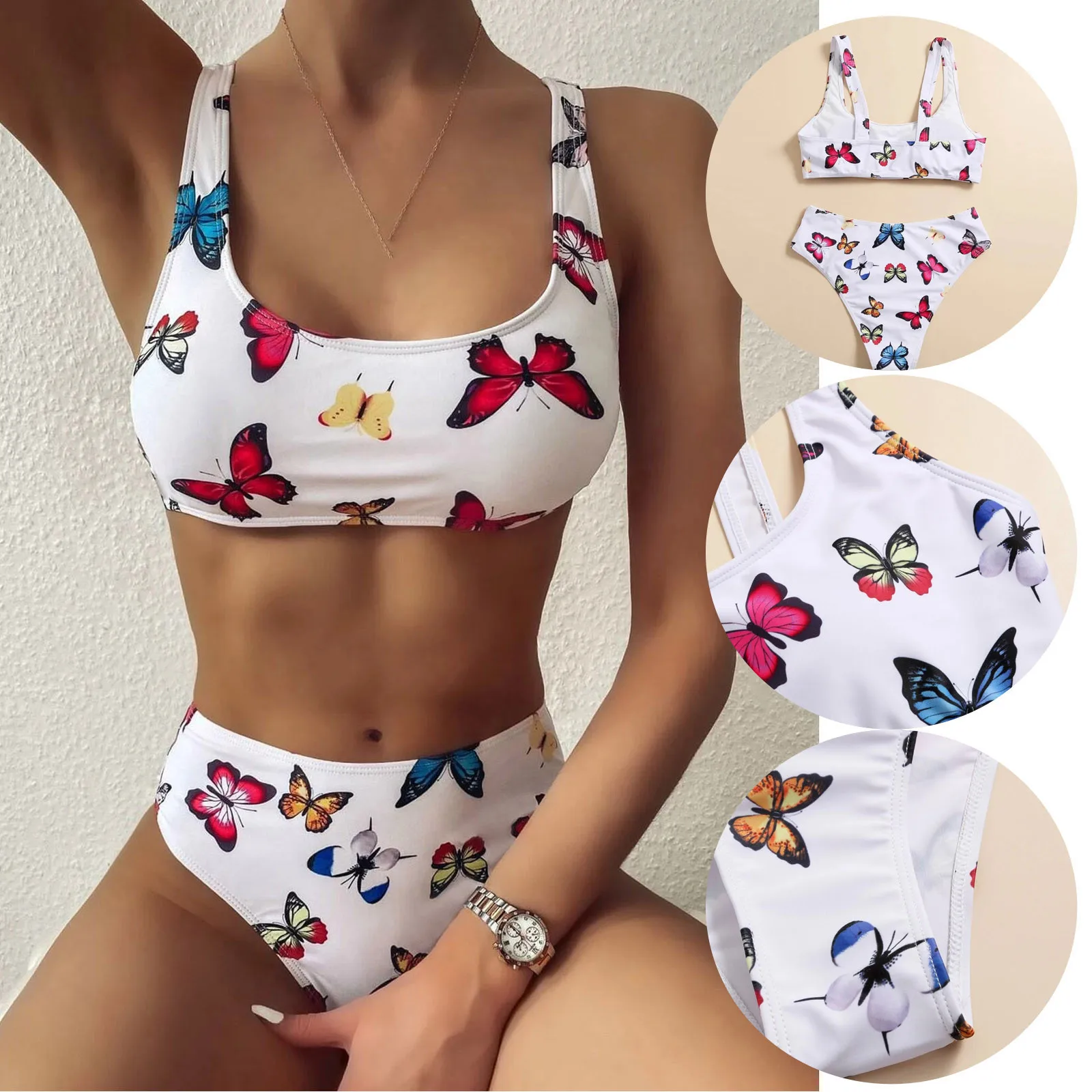 Сексуальный комплект бикини с высокой талией, купальник с принтом бабочки, купальный костюм, бикини, купальник-бандо из двух предметов, женские купальники-танкини 2021