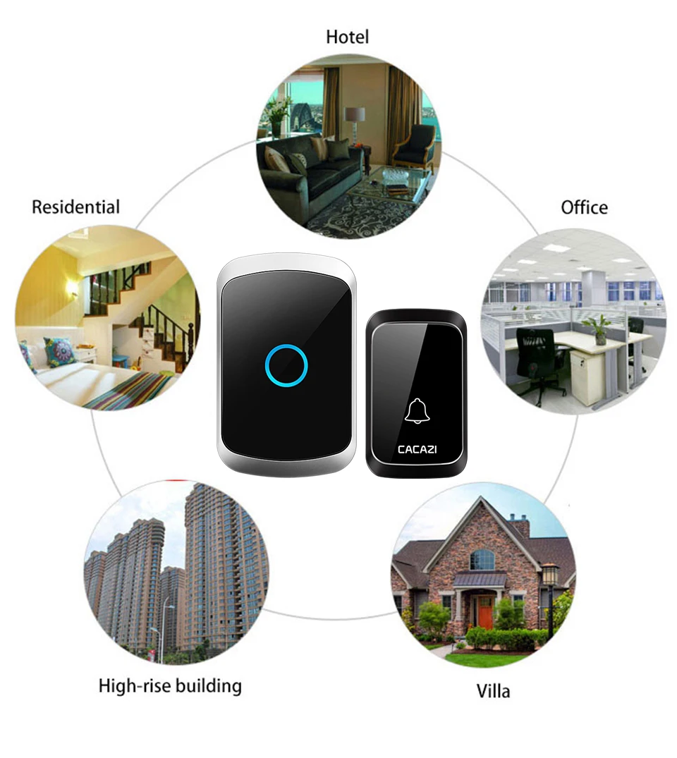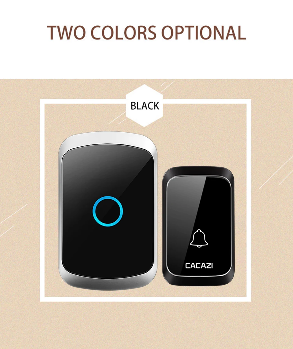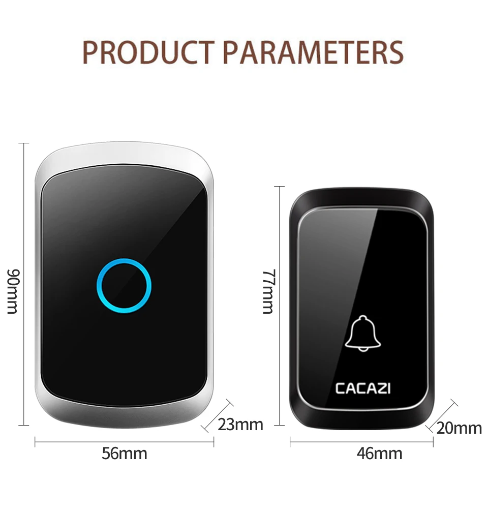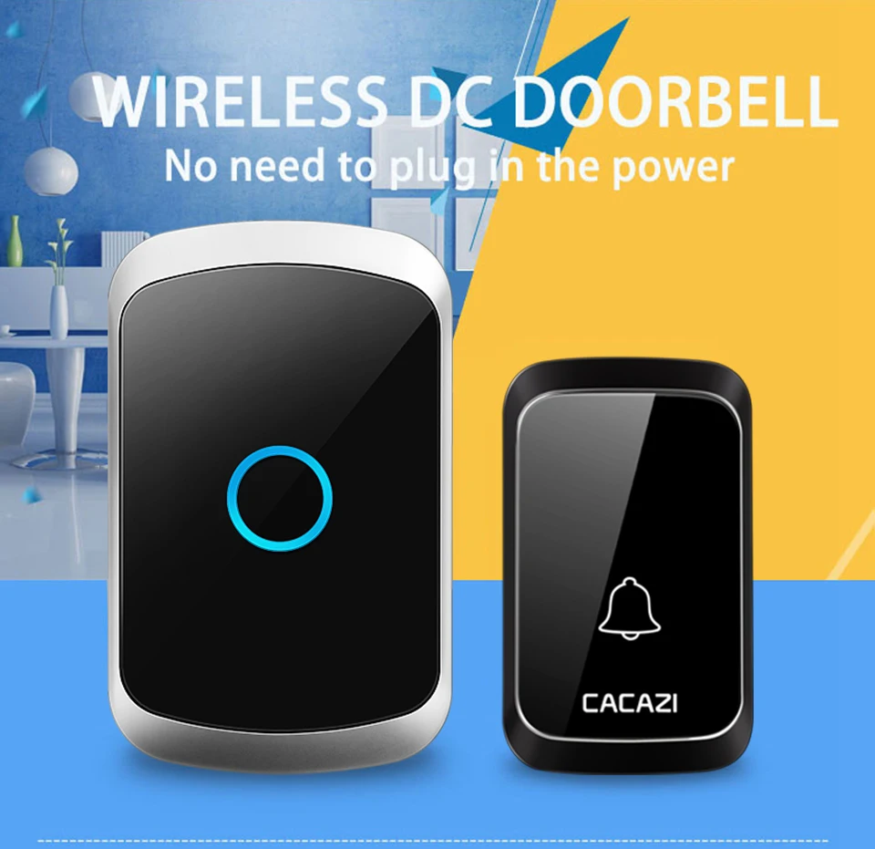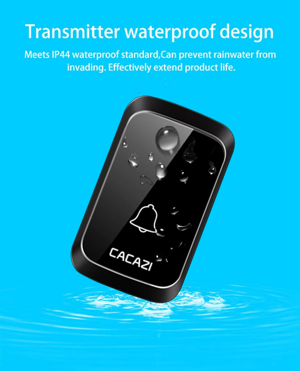 CACAZI беспроводной дверной звонок DC с батарейным питанием водонепроницаемый 36 колокольчиков 5 громкость 300 м Диапазон домашней безопасности беспроводной дверной звонок