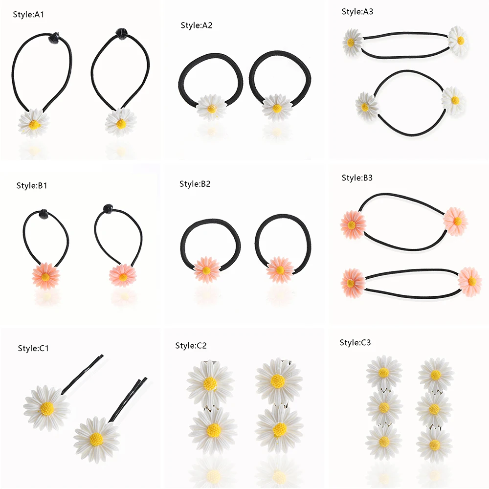2 шт., модная Милая заколка для волос с ромашками, эластичная резинка для волос, детский держатель для хвоста для девочек, аксессуары для укладки волос