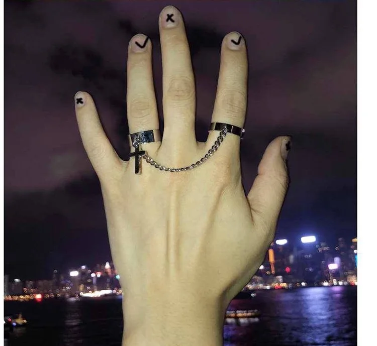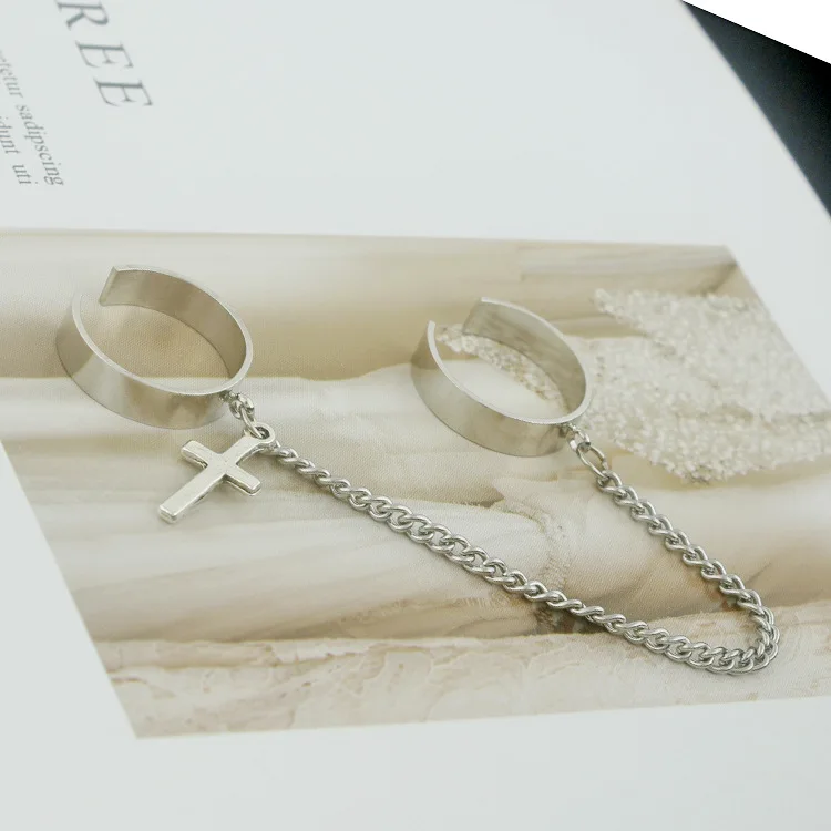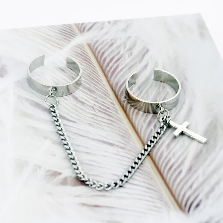 Модное Стильное Простое сочетание колец с цепочкой и крестом в стиле панк хип-хоп одно кольцо мужские и женские модные ювелирные изделия