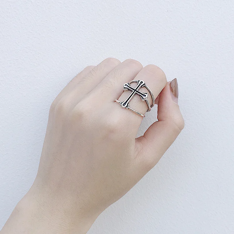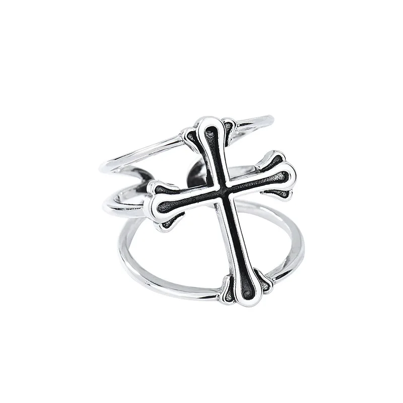 Кольцо серебряное с крестом для мужчин и женщин, модное Открытое ве...
