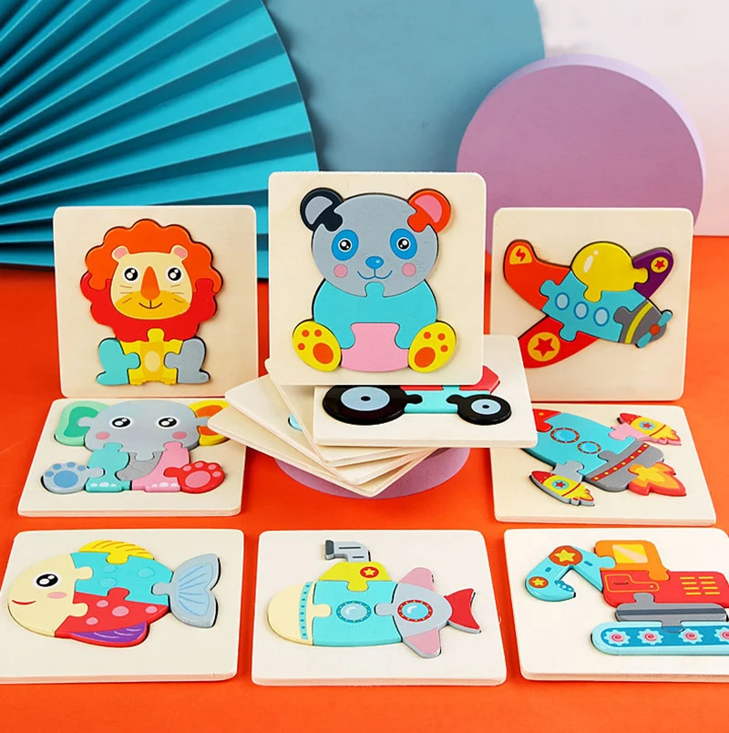 Мультяшные животные 3D Пазлы для детей деревянные игрушки Монтессори Развивающие игрушки для детей деревянные пазлы Монтессори игрушки для малышей