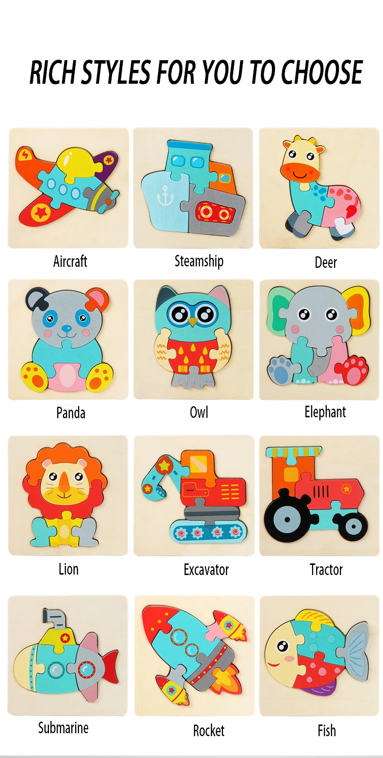 Деревянный 3D пазл Монтессори, головоломки, игрушки для детей, Мультяшные животные, автомобиль, деревянные головоломки, интеллектуальные детские развивающие игрушки