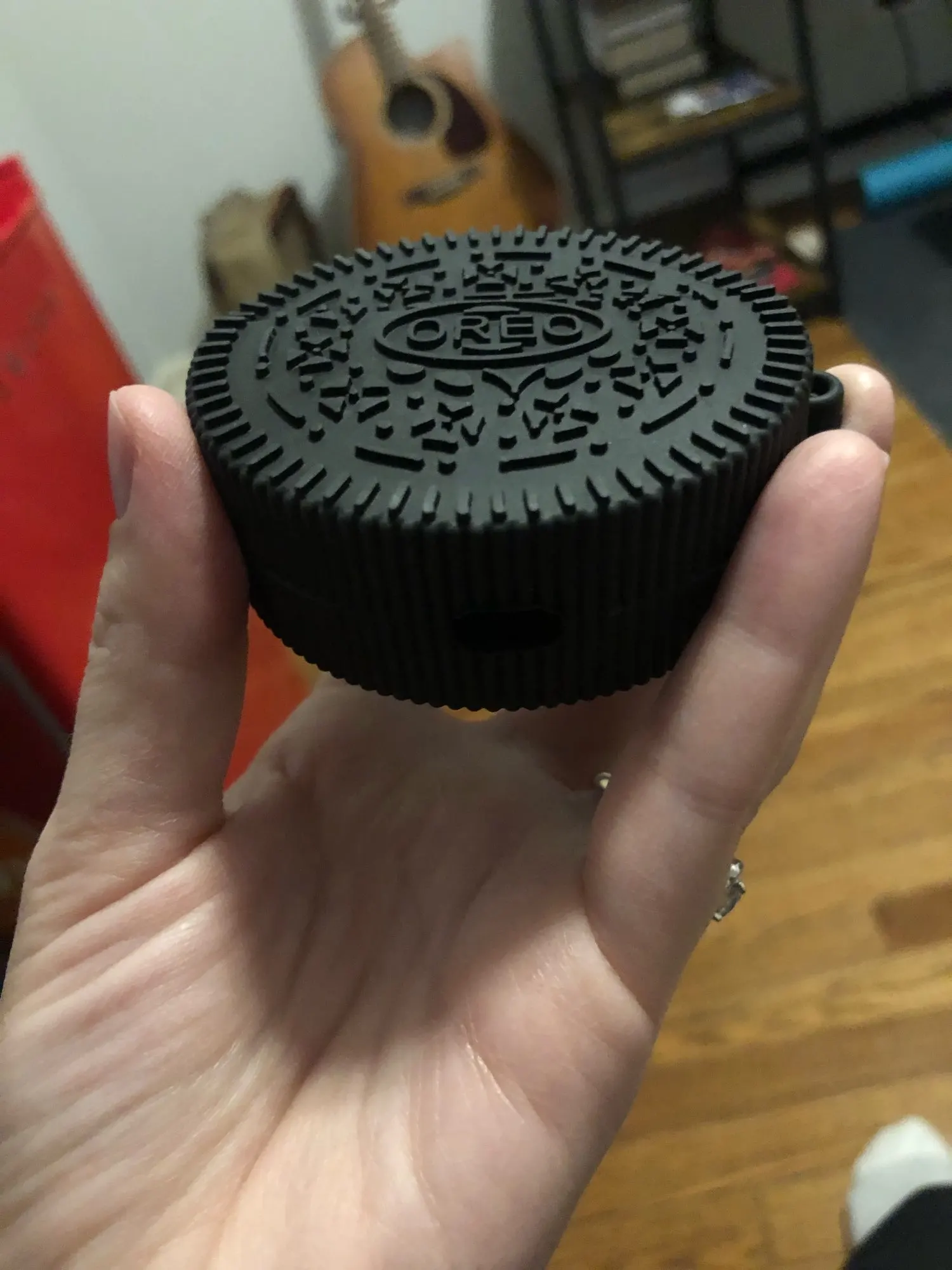 Конечно, не выглядит как Oreo без белого крема посередине, но нет фотографий в списке, чтобы сойти. Выглядит как Хоккейная Шайба и не закрывает полностью, поэтому не заряжается. Немного разочарован, но вы получаете то, за что платите.